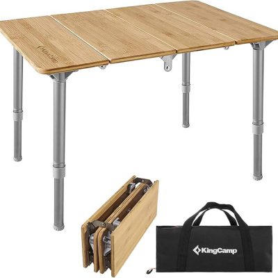 میز تاشو کینگ کمپ مدل KC1913 مدل: KC1913 ابعاد در حالت باز: 60 × 40 × 40 سانتی‌متر ابعاد در حالت جمع: 40 × 14 × 12 سانتی‌متر ارتفاع: قابل تنظیم از 27 سانتی‌متر تا 40 سانتی‌متر وزن محصول: 3.2 کیلوگرم حداکثر وزن قابل تحمل: 30 کیلوگرم جنس صفحه‌ی میز: بامبو طبیعی با پوشش ضد UV و ضدآب جنس فریم (پایه‌ها): آلومینیوم آلیاژی مقاوم و سبک