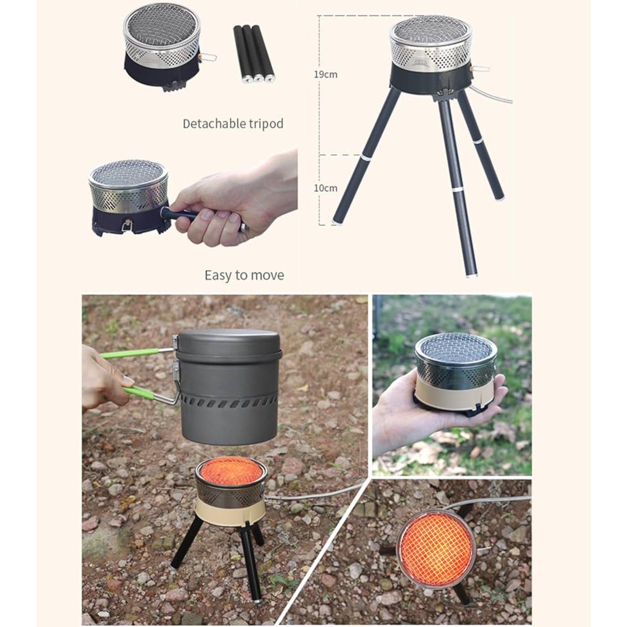 - کارایی و سرعت: توان حرارتی 1900 وات برای جوش آوردن سریع آب و پخت مؤثر انواع غذاها در فضای باز