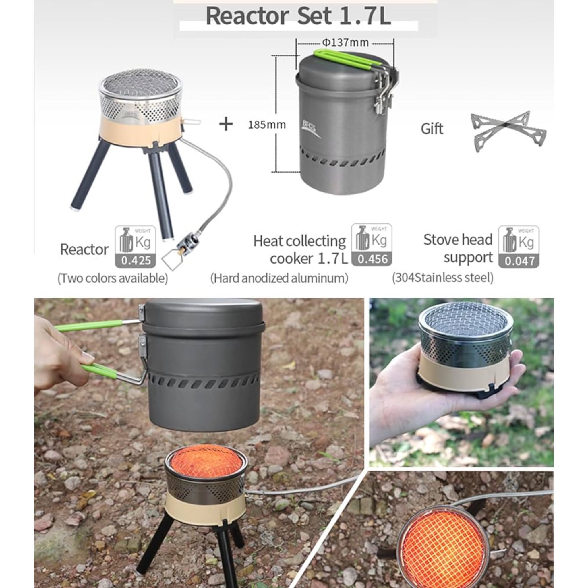 این اجاق دارای قابلمه جمعآوری حرارت با ظرفیت 1.7 لیتر است که برای گروههای کوچک 2 تا 3 نفر مناسب میباشد و امکان پخت سریع و بهینه انواع غذاها را فراهم میکند. اجاق با توان حرارتی 1900 وات به صورت گازی عمل میکند و جوش آوردن آب و حاضر کردن غذا را در زمان کوتاه ممکن میسازد. طراحی بادگیر آن باعث میشود حرارت بهینه حفظ شود و مصرف سوخت کاهش یابد، حتی در شرایط باد شدید و محیط باز.