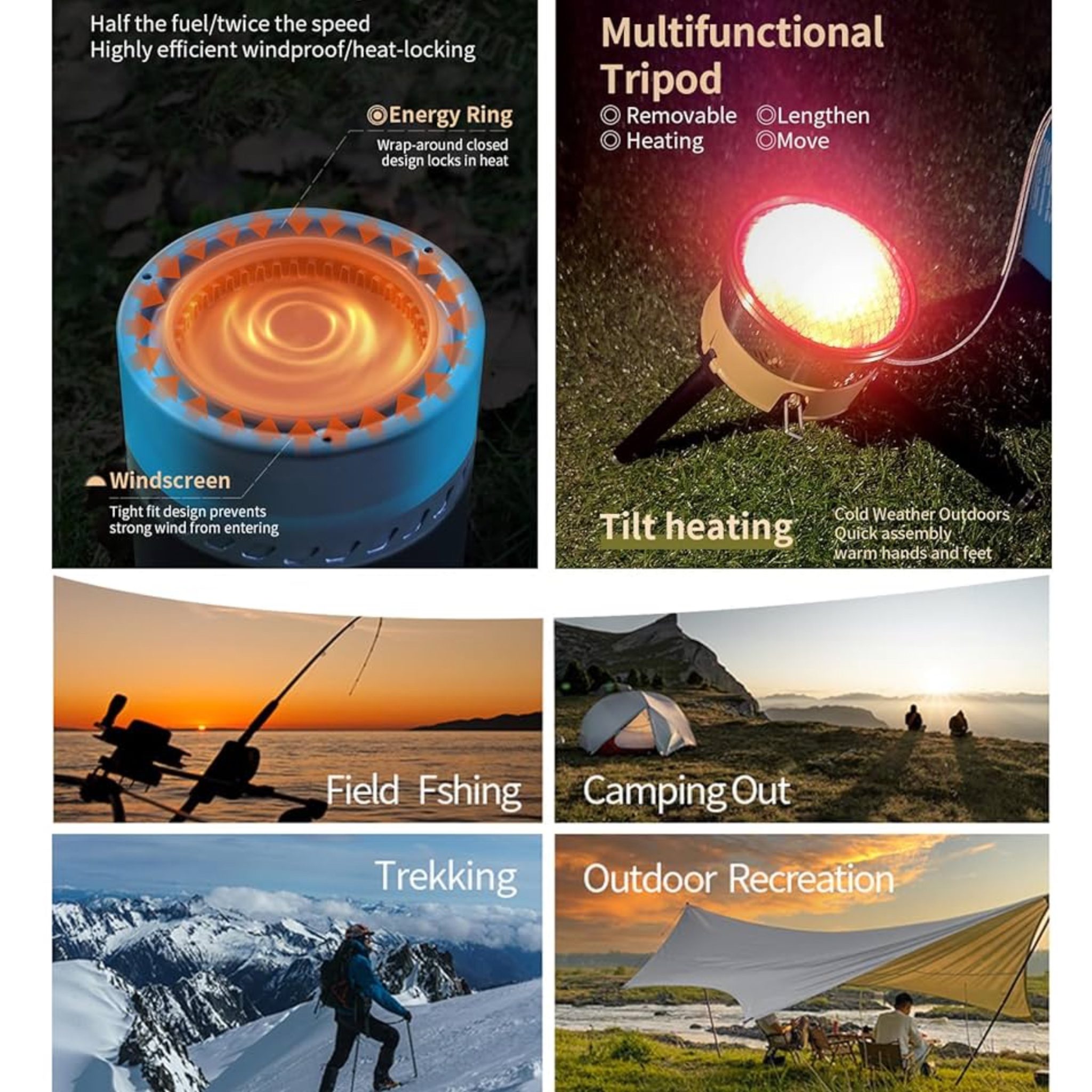 - مزایای اصلی: قابل حمل، ضد باد، توزیع یکنواخت حرارت، مقاوم و بادوام