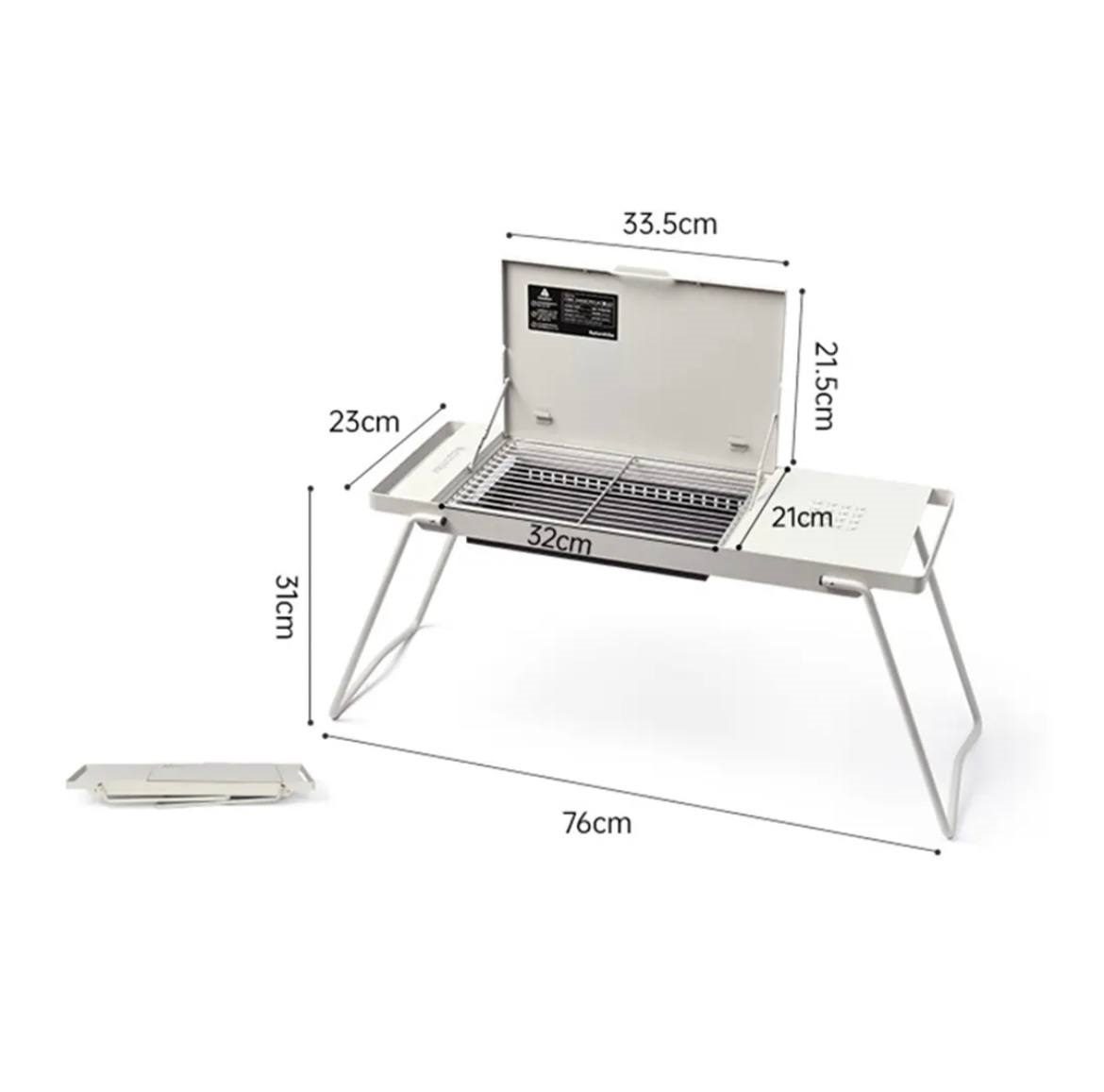 - ابعاد باز و سوخت محصول: در حالت باز، این اجاق دارای ابعاد 76 × 25.5 × 52.5 سانتیمتر است که سطح مناسبی برای پخت انواع غذاها با زغال فراهم میآورد. نوع سوخت این اجاق زغال چوب است که باعث میشود عطر و طعم بینظیری به غذاها بدهد. طعمی که فقط در آشپزی سنتی و طبیعی با زغال میتوان تجربه کرد.