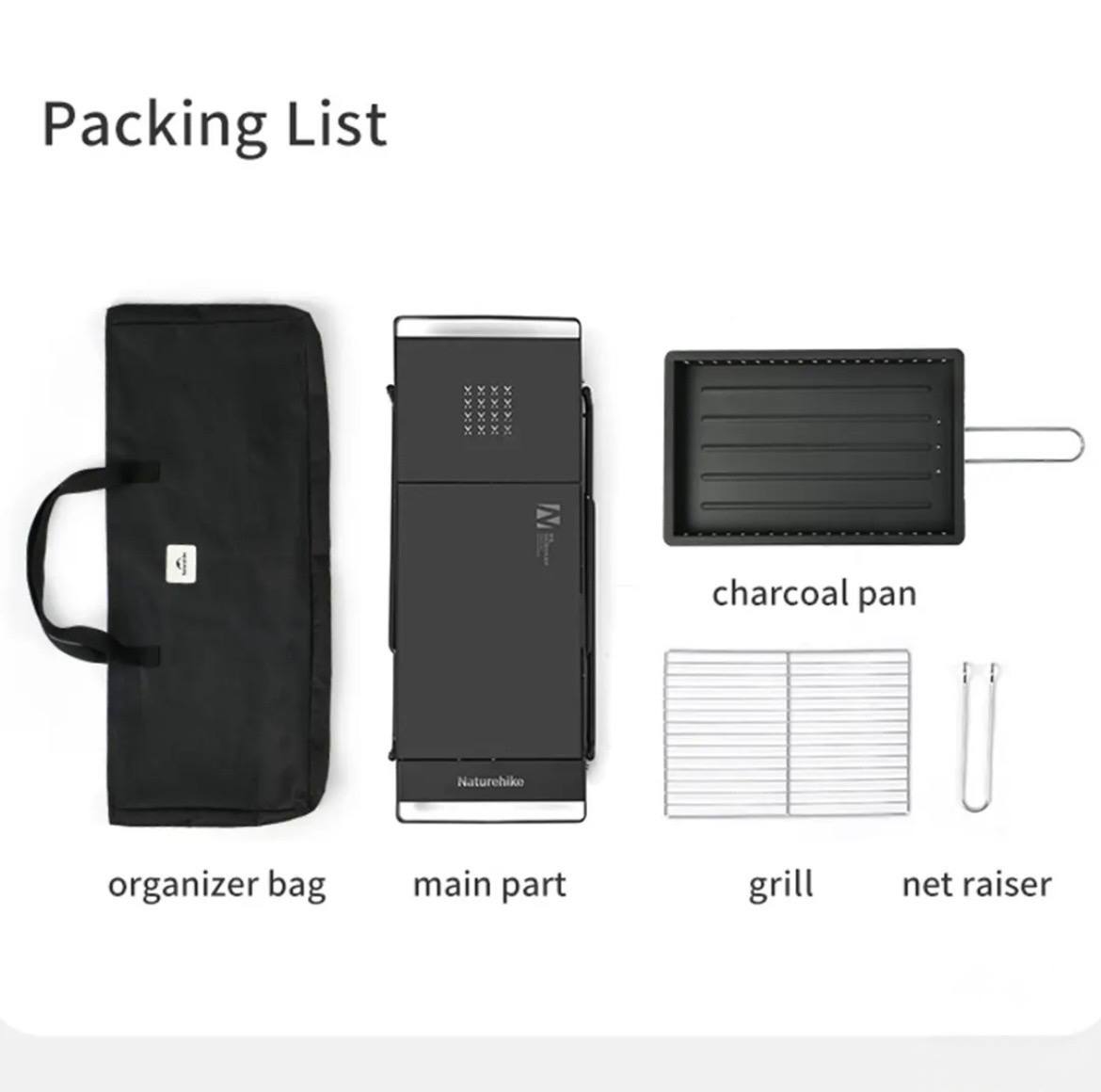 - اقلام همراه: سینی زغال، توری گریل، میله بالابر توری، کیف حمل پارچهای مقاوم