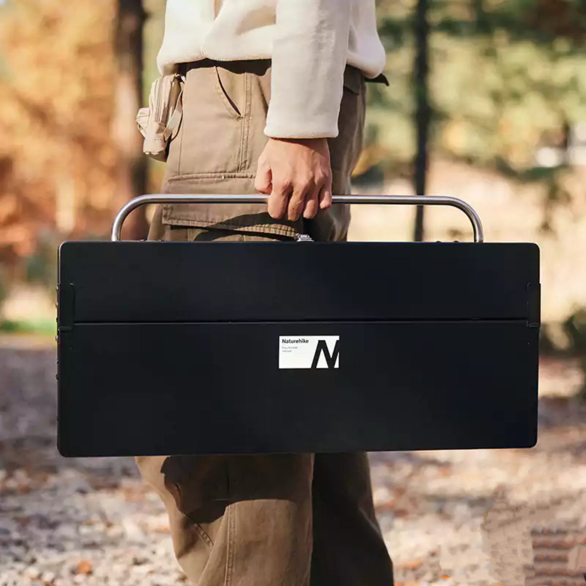 جعبه آشپزخانه سیار نیچرهایک مدل CNH22CJ013‏ مدل: CNH22CJ013‏ ابعاد در حالت باز: 182 × 103 × 42 سانتی‌متر ابعاد در حالت جمع: 50 × 52 × 53 سانتی‌متر ابعاد صفحه میز مشکی: 45 × 45 × 2 سانتی‌متر ابعاد فضای داخلی جعبه: 42 × 42 × 34 سانتی‌متر وزن اجاق اصلی: 18.6 کیلوگرم وزن هر میز تاشو (صفحه مشکی): 1.9 کیلوگرم جنس بدنه اصلی: SMC، ورق‌های کامپوزیتی جنس سازه‌ها و اتصالات: آلومینیوم آلیاژی 6063 نوع فلز پشتیبان: فولاد نورد سرد با استحکام بالا جنس سطح میز: روکش مقاوم در برابر حرارت، خراش و رطوبت