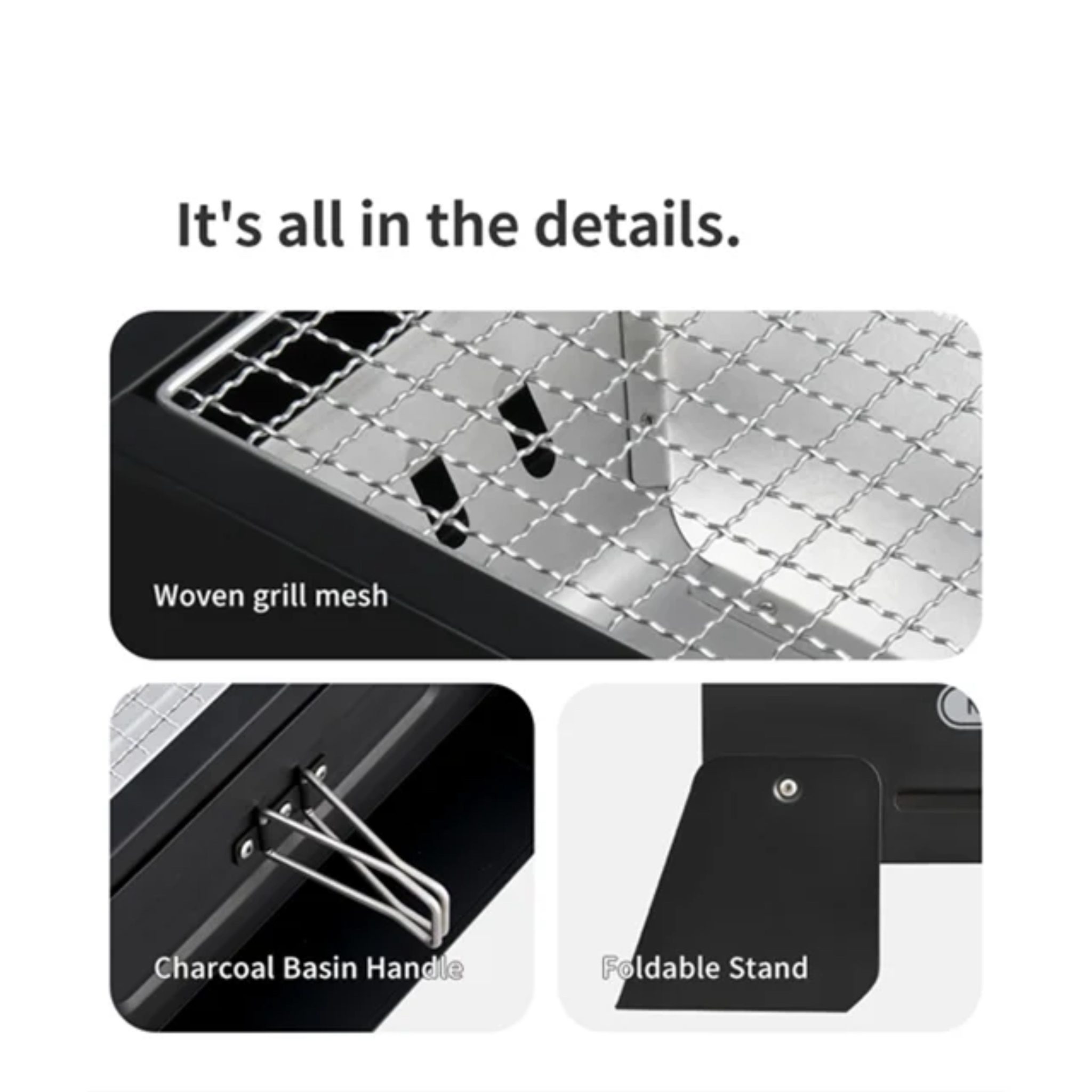 باربیکیو ذغالی نیچرهایک مدل CNK2300CJ010 مدل: CNK2300CJ010 ظرفیت: مناسب برای 4 تا 8 نفر ابعاد در حالت باز: 50.2 × 32.8 × 33.5 سانتیمتر ابعاد در حالت بسته: 50.2 × 36.5 × 6.5 سانتیمتر مساحت گریل: 40 × 21 میلی‌متر وزن: حدود 4.1 کیلوگرم جنس بدنه: صفحه نورد سرد SPCC پوشش داخلی: لعاب ضخیم‌شده شبکه گریل: استیل ضد زنگ 430 پایه‌ها: چوب لاستیکی و آهن
