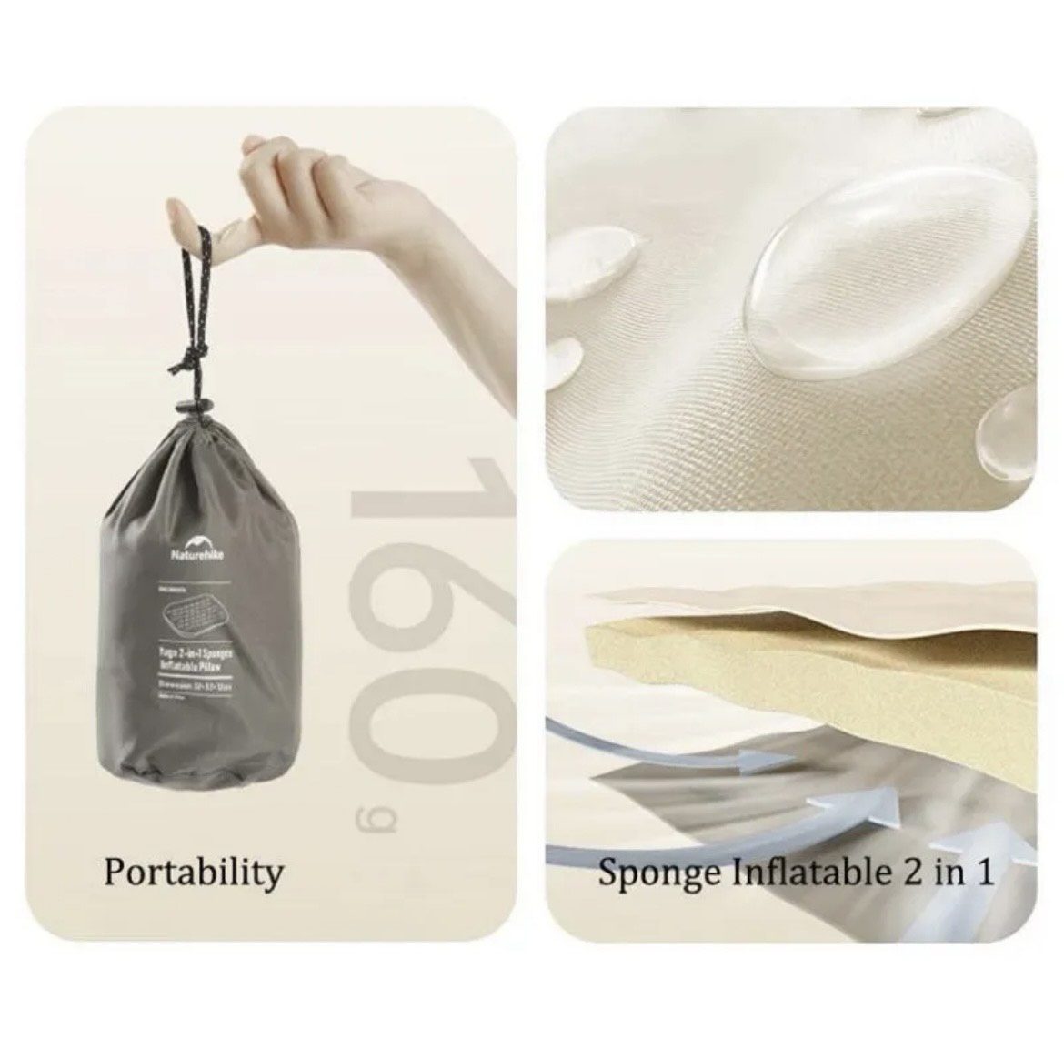بالش بادی نیچرهایک مدل NH21ZT001 مدل: NH21ZT001 مکانیزم باد شدن: فناوری Quick Inflation با سوپاپ دو لایه نوع باد شدن: دستی (دمیدن با دهان) یا فشرده‌سازی بدون نیاز به پمپ جنس رویه بالش: پارچه کشسان 30D Elastic Fabric جنس لایه داخلی: اسفنج ضخیم با خاصیت بازگشت ارتجاعی جنس پشت بالش: پوشش مقاوم 75D Chunya Yarn ابعاد باز: 46 × 30 × 12 سانتی‌متر ابعاد در حالت بسته: حدوداً 15 × 10 سانتی‌متر وزن خالص محصول: حدود 250 تا 300 گرم