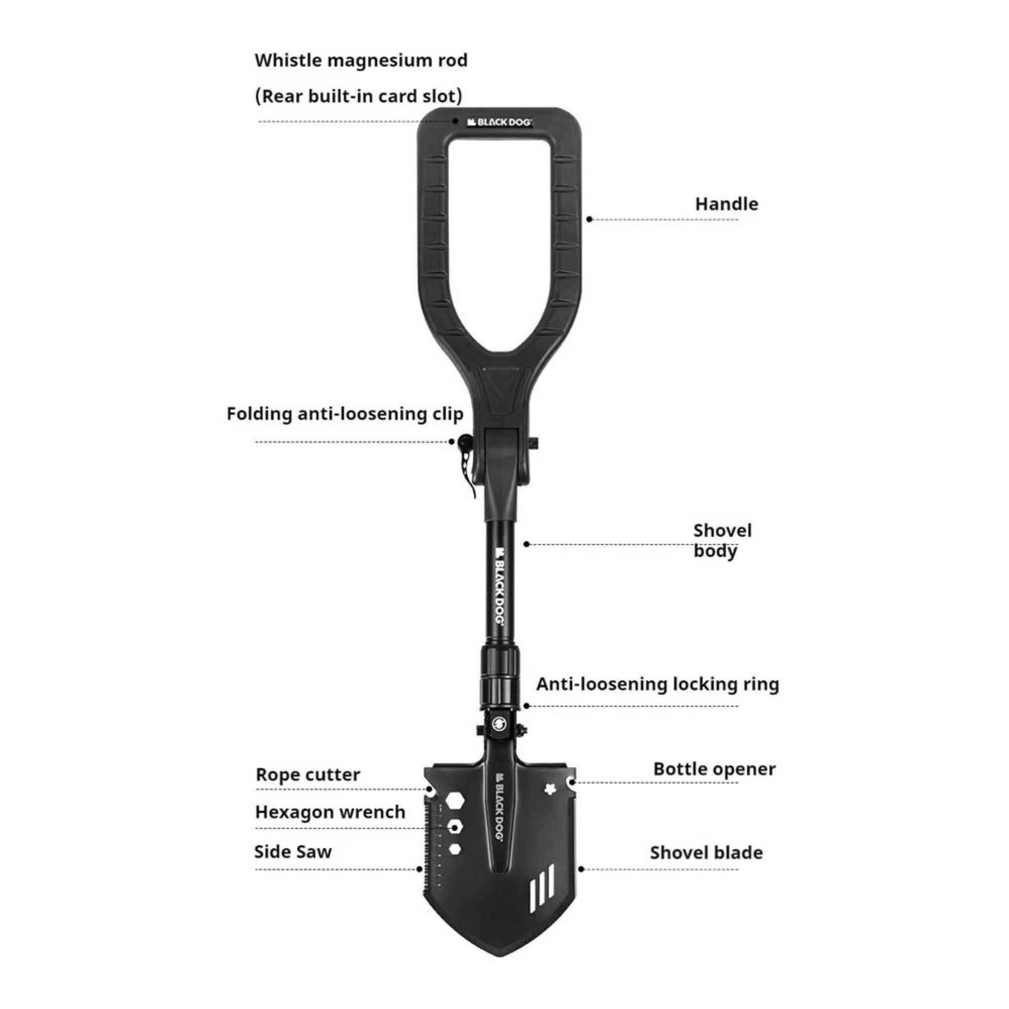 بیل تاشو 11 کاره نیچرهایک (Naturehike folding shovel) جنس: ترکیبی از فولاد ضد زنگ (فولاد ویژه 3Cr13)، الیاژ الومینیوم و میله منیزیم ابعاد باز: 14.2 × 83.5 سانتی متر ابعاد تاشده: 6.8 × 18.1 × 27 سانتی متر طول دسته: 59.5 سانتی متر طول تیغه بیل: 24 سانتی متر وزن: 1200 گرم دارای 11 قابلیت طراحی دسته به صورت سه تکه دارای یک کیف مخصوص قابلیت اتصال و جدا کردن
