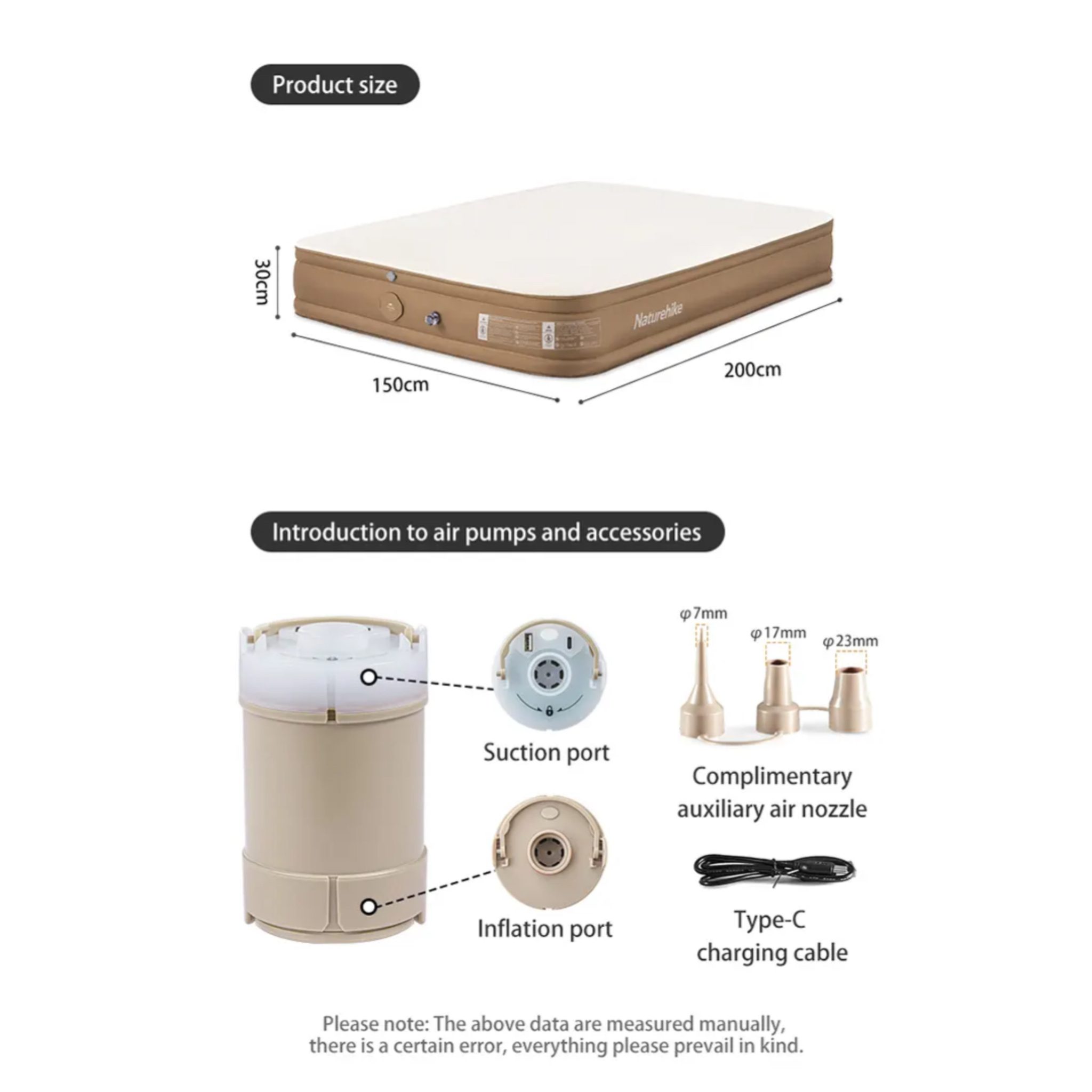 برند: Naturehike مدل: NH22FCD04 جنس: تشکیل دهنده پلی استر + فلوکینگ + ABS پمپ: دارای یک عدد پمپ با باتری لیتیومی 4000mAh /5c تا 6000 ابعاد تباز شده : 195×150×35 سانتی متر ابعاد بسته بندی : 35 × 38 × 21 سانتی متر دارای کیسه ذخیره سازی وزن : 7.5 کیلوگرم تحمل وزن : تا 300 کیلوگرم