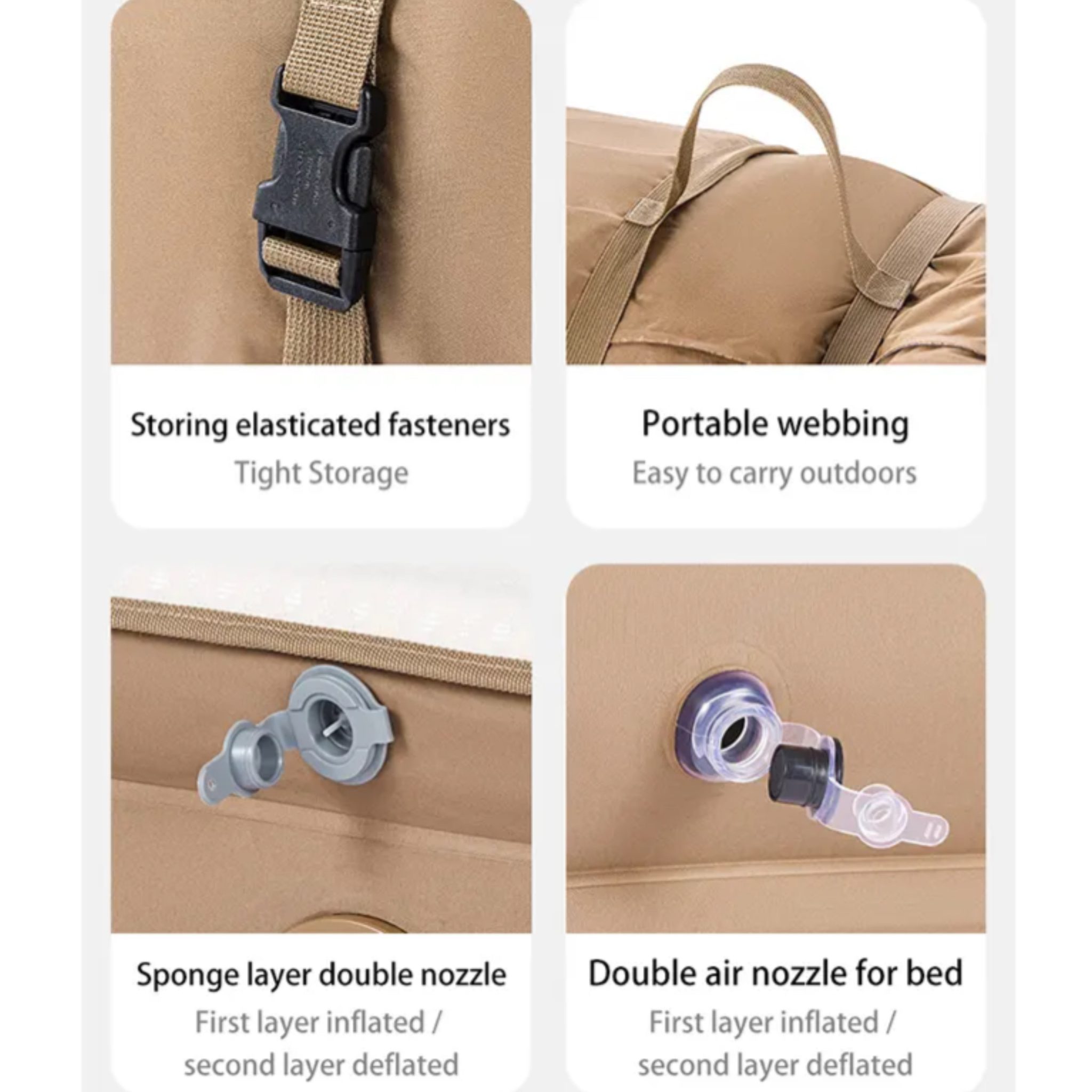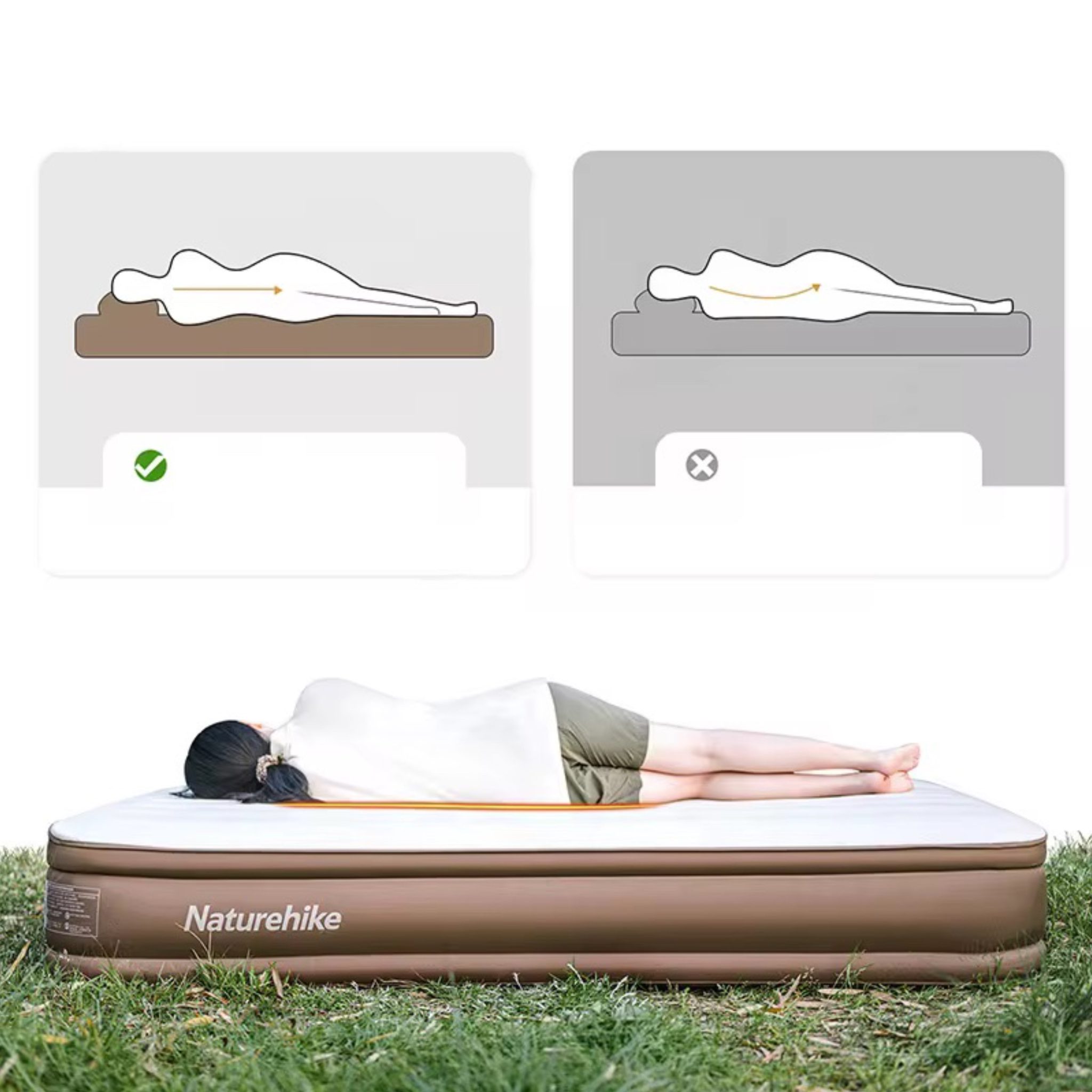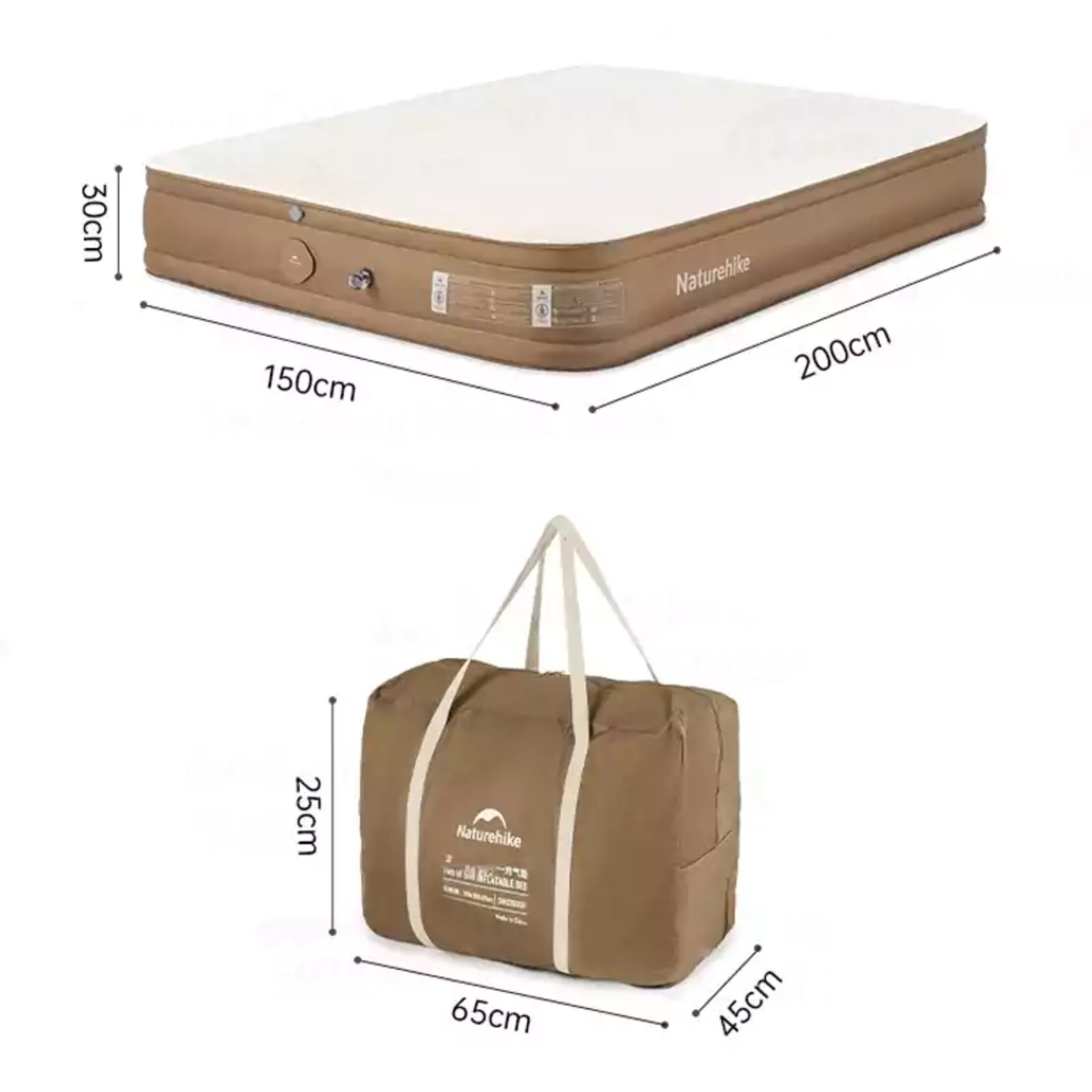 تشک بادی پشتی‌دار دو نفره نیچرهایک مدل CNH22DZ002 مدل: CNH22DZ002 رنگ: خاکی ابعاد در حالت باز: 203 × 152 × 46 سانتی‌متر ابعاد بسته‌بندی: 38 × 35 × 20 سانتی‌متر وزن: حدود 8.7 کیلوگرم تحمل وزن: حداکثر تا 300 کیلوگرم جنس بدنه اصلی: PVC مقاوم و بادوام روکش سطح: مخمل نرم (Flocking) برای راحتی بیشتر قطعات سخت‌افزاری: پلاستیک فشرده ABS ساختار داخلی: فنرهای داخلی برای توزیع وزن و حفظ فرم تشک