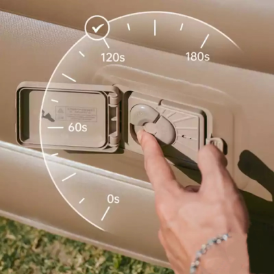دیگر نیازی به پمپ دستی یا دمندههای جداگانه نیست. نیچرهایک این مدل را به پمپ باد داخلی هوشمند مجهز کردهاست که با فشردن تنها یک دکمه، تشک را بهصورت خودکار باد میکند. این پمپ با باتری لیتیومی 7.4 و 3.7 ولتی و ظرفیت 3000 میلیآمپرساعت کار میکند و با توان فشار ۳ تا ۵ کیلوپاسکال، حجم هوای ۴۰۰ تا ۴۵۰ لیتر در دقیقه را تأمین میکند. نتیجه آن است که تشک در عرض چند دقیقه آمادهی استفاده میشود