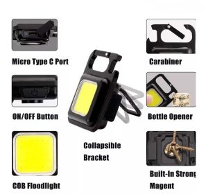 جاکلیدی چندکاره چراغ قوه دارCOB Rechargeable Keychain light