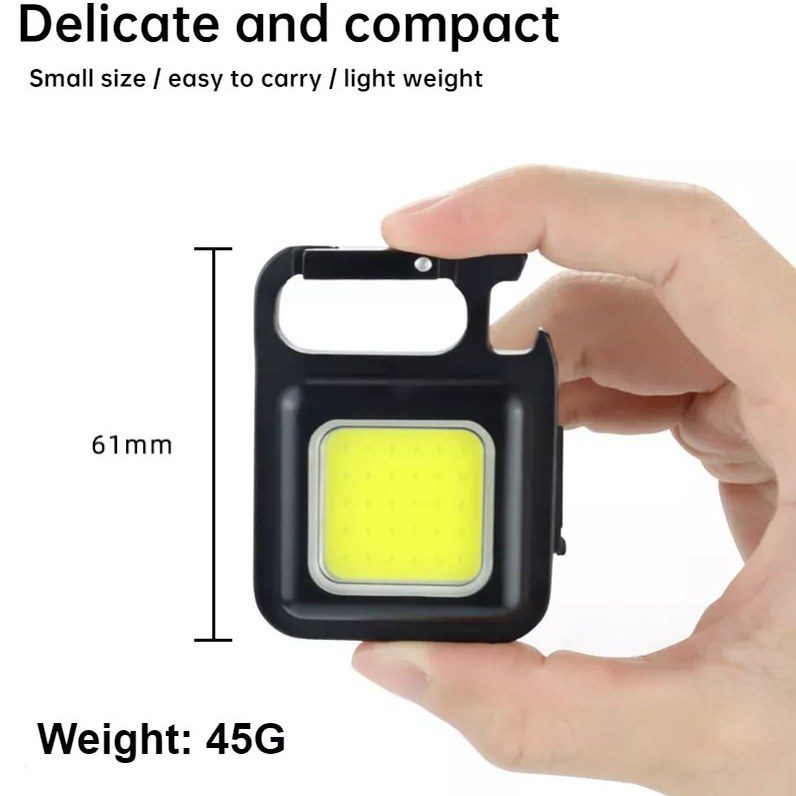چراغ چندکاره مدلCOB Rechargeable Keychain lightیک چراغ کوچک دستی چند کاره است که می توان از ان به انواع روش استفاده کرد.روشنایی این چراغ حداکثر 800 لومن است که نوری به رنگ سفید مهتابی تولید می کند.از این چراغ قوه هم میتوان حین پیاده روی در دل طبیعت استفاده کرد و هم می توان داخل چادر مورد استفاده قرار داد.