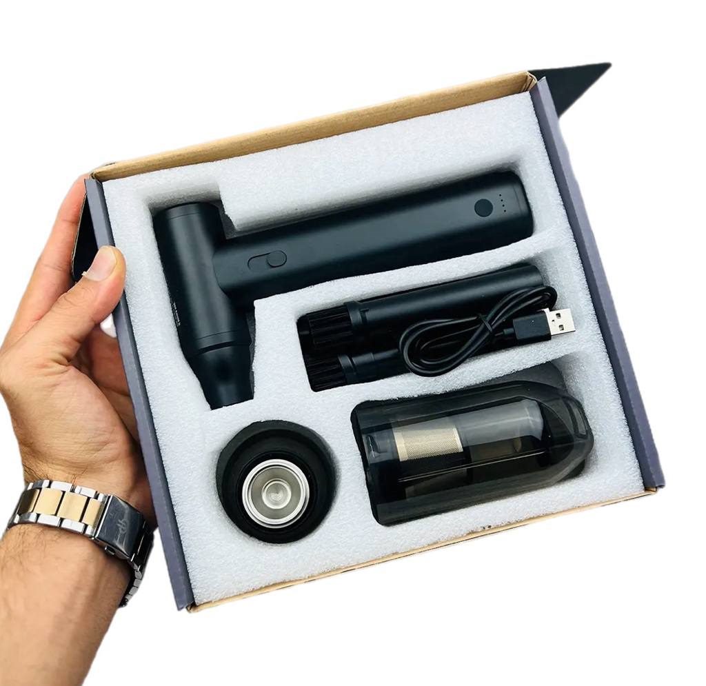 • اقلام همراه: دستگاه دمنده و مکنده، کابل شارژ USB Type-C، نازل سیلیکونی متمرکزکننده، سری‌های اضافه، دفترچه راهنما، جعبه حمل مقاوم