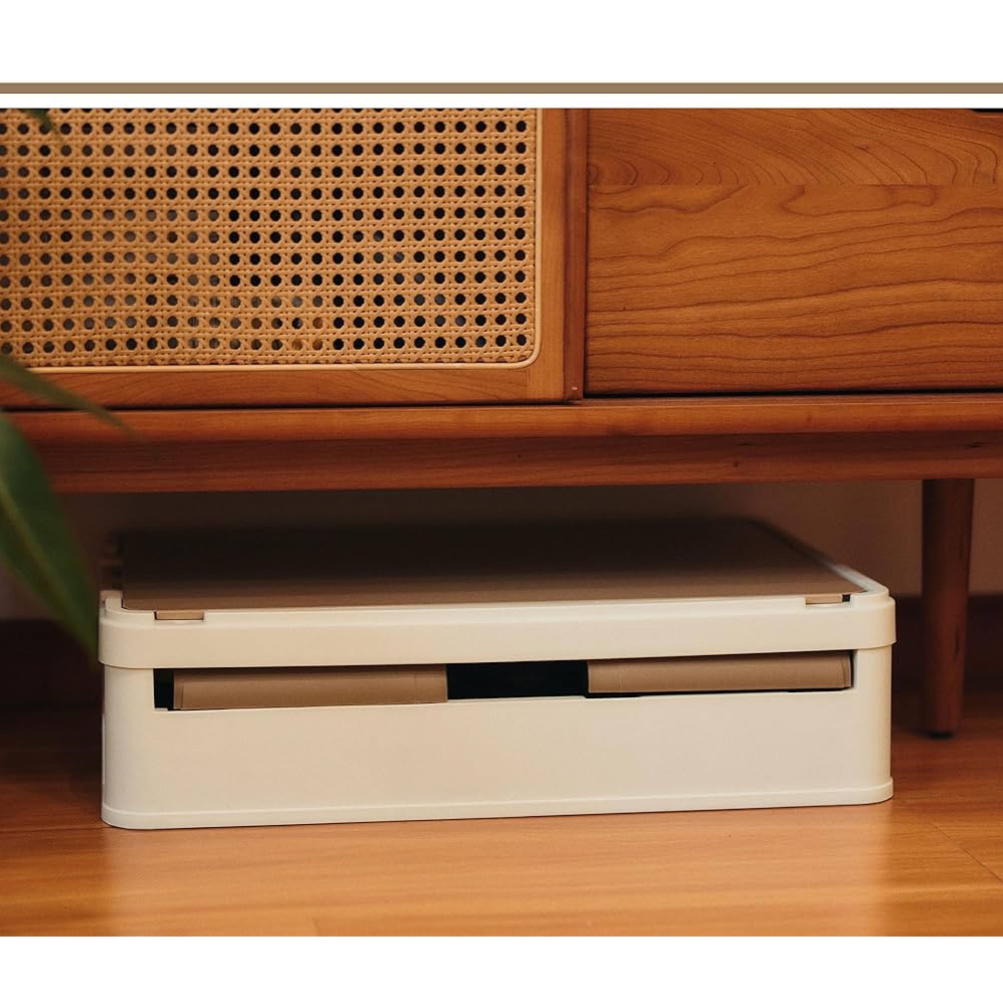 در حالت جمع‌شده، تنها 10.5 سانتی‌متر ارتفاع دارد و به‌راحتی در صندوق عقب خودرو یا فضای کوچک قرار می‌گیرد. جنس بدنه از پلاستیک PP فشرده و بی‌بو است که در عین سبکی، مقاومت فوق‌العاده‌ای در برابر فشار، ضربه و رطوبت دارد و برای نگهداری لوازم شخصی، ابزار، لباس، خوراکی یا حتی مواد غذایی خشک کاملاً ایمن است.