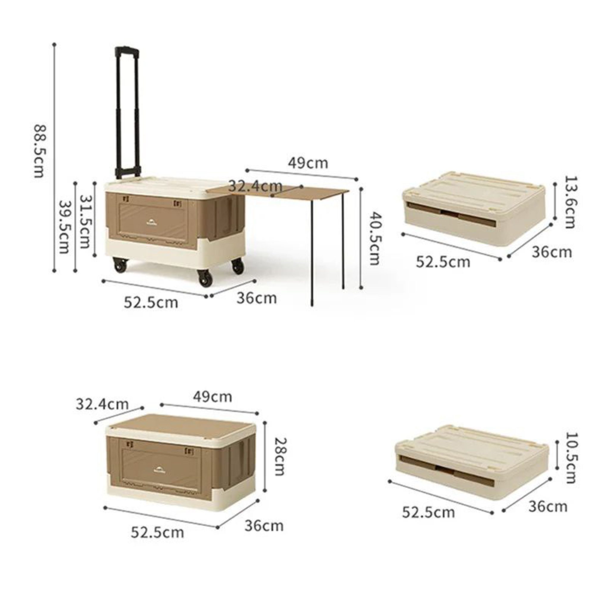 جعبه چرخ‌دار ذخیره‌سازی نیچرهایک مدل CNK2350XB012 مدل: CNK2350XB012 جنس بدنه اصلی: پلی‌پروپیلن (PP) باکیفیت جنس بدنه داخلی: همانند بدنه جنس قطعات فلزی: آهن تقویت‌شده جنس چرخ‌ها: پلاستیک مقاوم + اتصالات فلزی سطح بالایی میز: تخته‌ی پلاستیکی مقاوم (قابل جداسازی و نصب روی پایه‌ها) نوع قفل درب‌ها: فشاری – دکمه‌ای با عملکرد ایمن ابعاد در حالت جمع: 52.5 × 36 × 13.6 سانتی‌متر جعبه بدون چرخ 52.5 × 36 × 28 سانتی‌متر جعبه با چرخ و میز: 101.5 × 36 × 88.5 سانتی‌متر حجم: 42 لیتر واقعی تحمل وزن بدنه: تا 30 کیلوگرم وزن: حدود 6.98 کیلوگرم