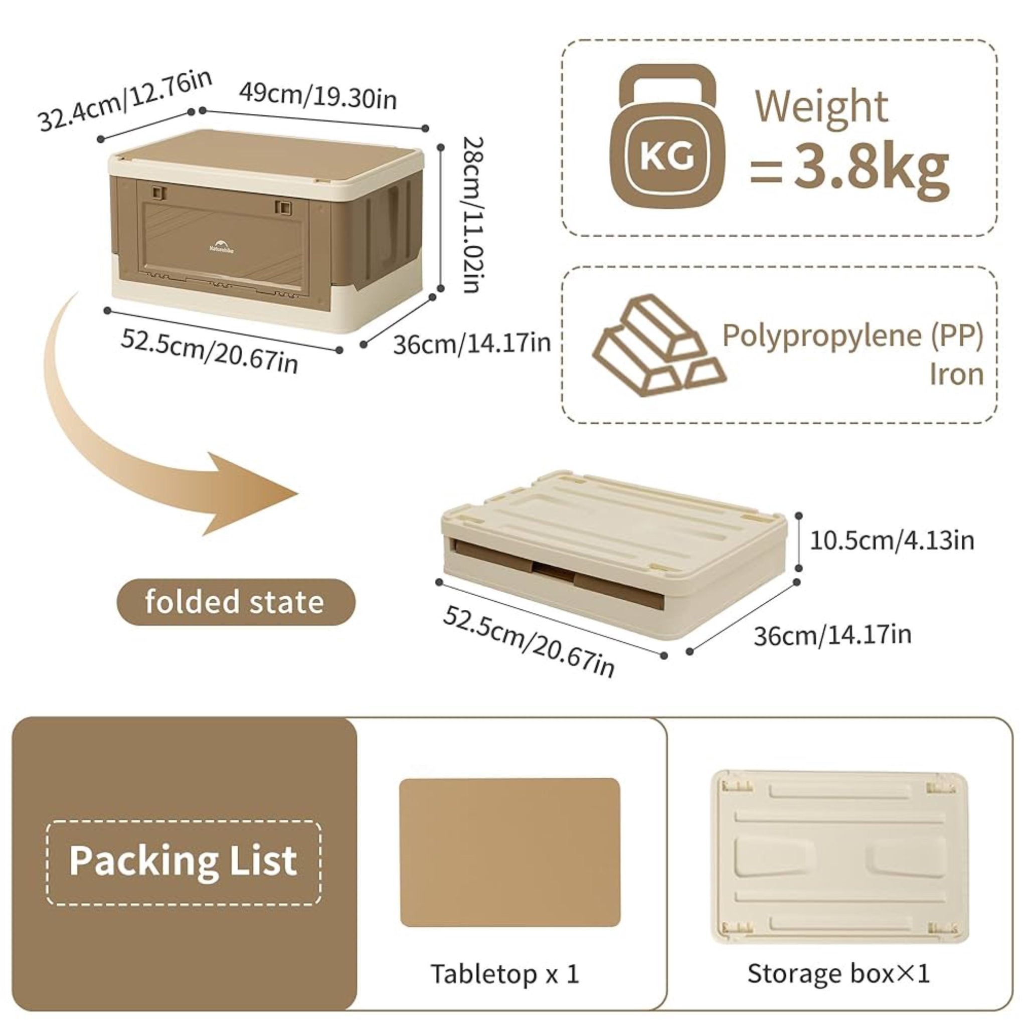 جعبه وسایل نیچرهایک (Naturehike Storage Box) مدل CNK2450XB020 مدل: CNK2450XB020 جنس: پلی پروپیلن، ام دی اف ساخته شده از ملامینه وزن: حدود 4 کیلوگرم ظرفیت: 52 لیتر ابعاد باز: 53 × 36.5 × 33.5 سانتی متر ابعاد بسته بندی: 53 × 36.5 × 10 سانتی متر رنگ: خاکستری