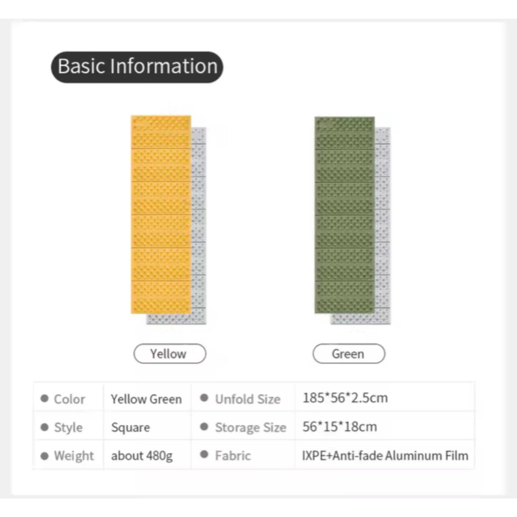 زیرانداز Accordion (اکاردئونی)کیسه خواب جنس: آلومینیوم و فوم فشرده سبک و قابل حمل تاشو و کم حجم تراکم و جذب شوک بالا دارای بافت شانه تخم مرغی در یک رنگ سبز بسیار زیبا