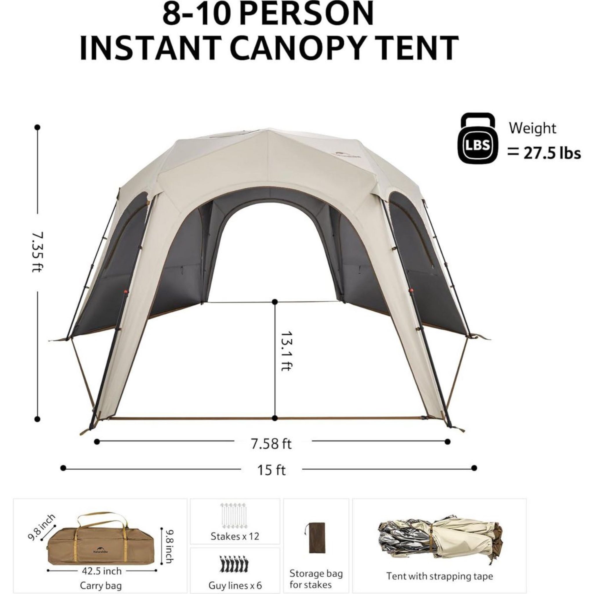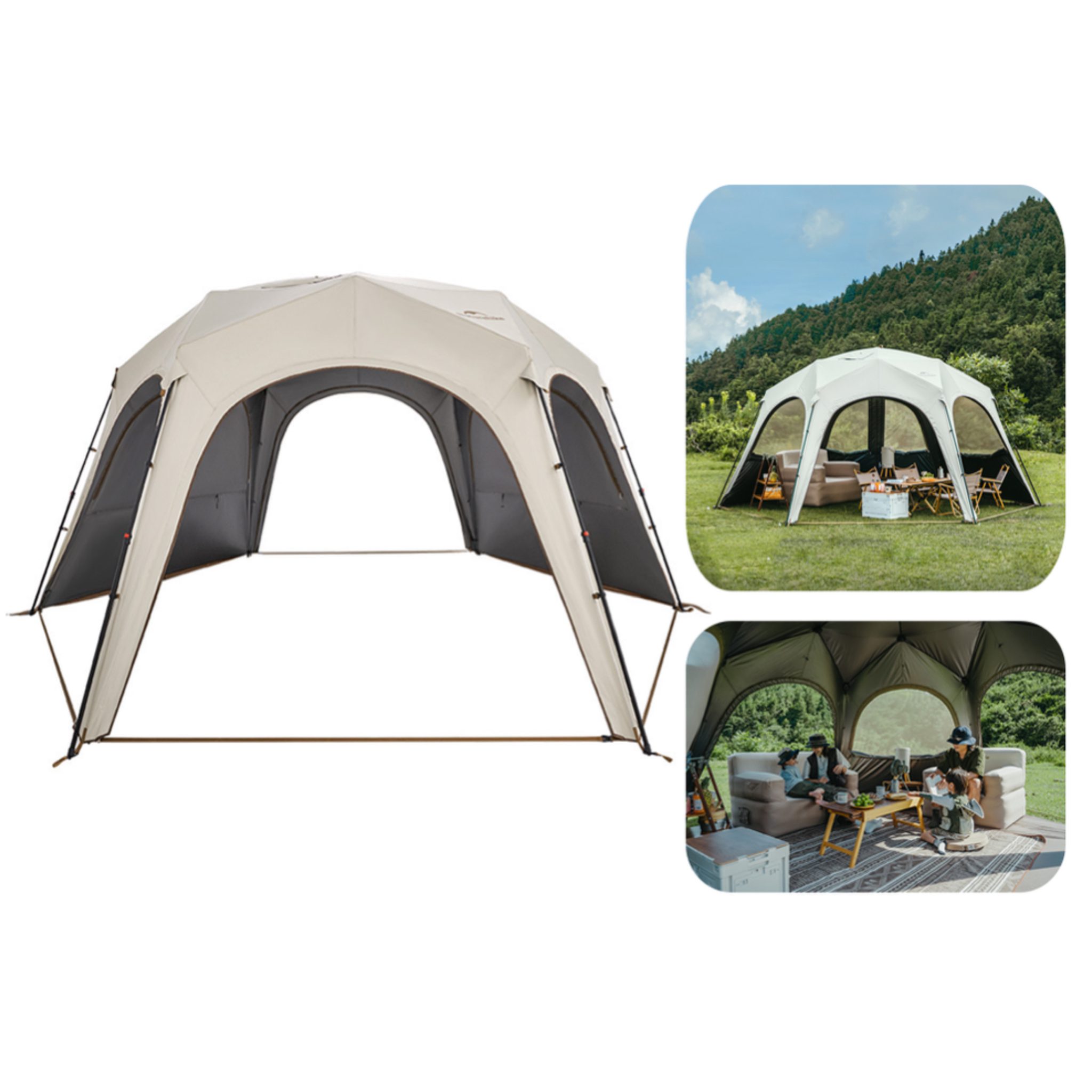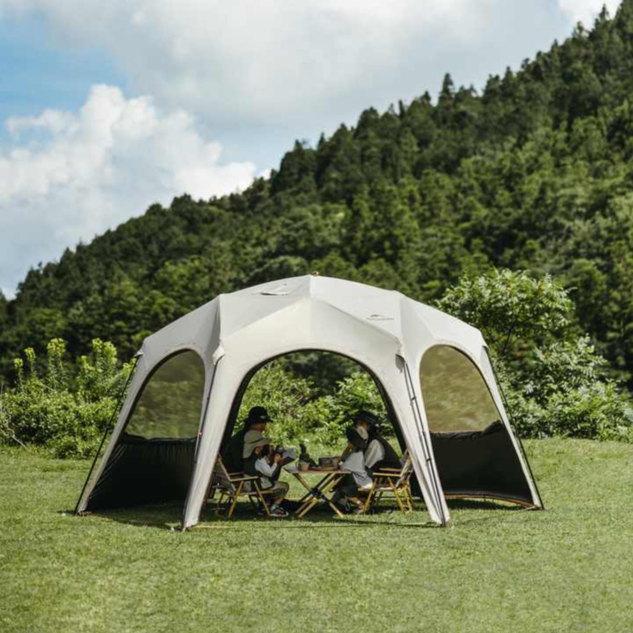 مقاومت پارچه در برابر اشعه مادون قرمز IRR 99.9%، محدودکننده نور مرئی VLR 99.9% و بازتاب حرارت TSER 100% است و محیط داخلی چادر را برای استراحت و فعالیتهای گروهی بسیار دلپذیر میسازد. این محصول ترکیبی از دوام، انعطافپذیری، نصب سریع و حمل آسان است و انتخابی ایدهآل برای کمپینگ، پیکنیک، جشنها، فستیوالها و استفاده زمستانی با اجاق کمپینگ به شمار میرود.