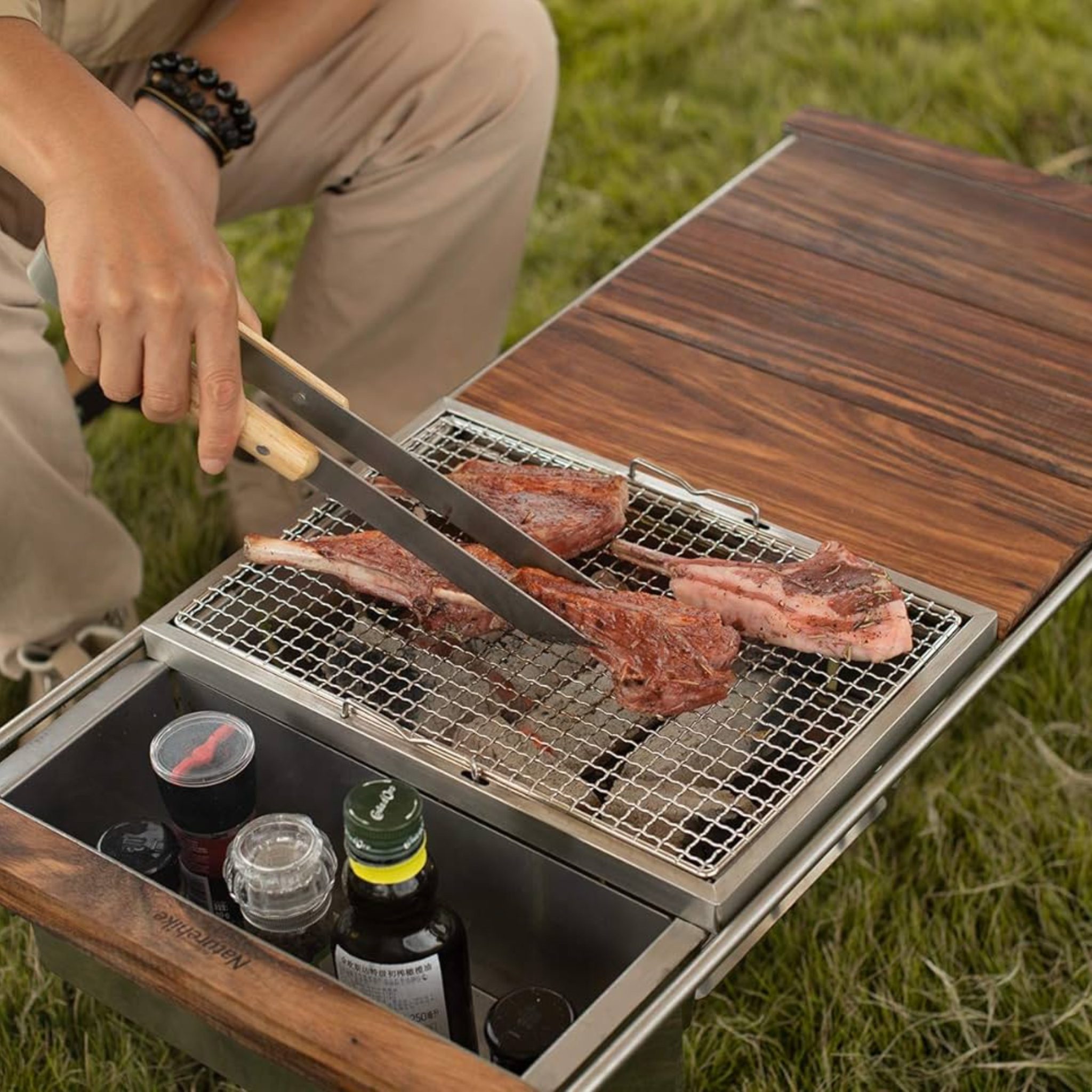 باربیکیو ذغالی نیچرهایک مدل CNK2300CJ010 مدل: CNK2300CJ010 ظرفیت: مناسب برای 4 تا 8 نفر ابعاد در حالت باز: 50.2 × 32.8 × 33.5 سانتیمتر ابعاد در حالت بسته: 50.2 × 36.5 × 6.5 سانتیمتر مساحت گریل: 40 × 21 میلی‌متر وزن: حدود 4.1 کیلوگرم جنس بدنه: صفحه نورد سرد SPCC پوشش داخلی: لعاب ضخیم‌شده شبکه گریل: استیل ضد زنگ 430 پایه‌ها: چوب لاستیکی و آهن