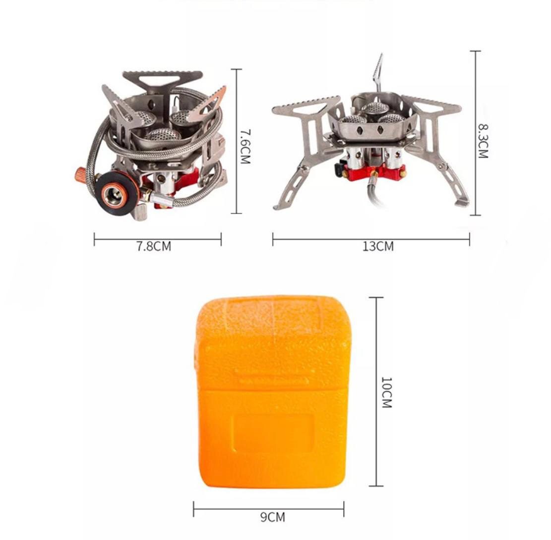 ابعاد:19×16×9 تحمل وزن:25 کیلوگرم نوع سوخت:گاز رنج حرارتی:1300 وات دارای پایه های خمیده جنس:الیاژ برنج و فولاد ضد زنگ تعداد پره:3
