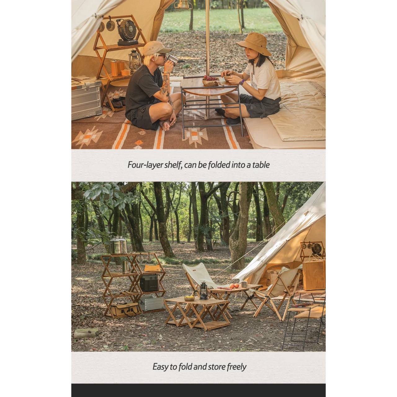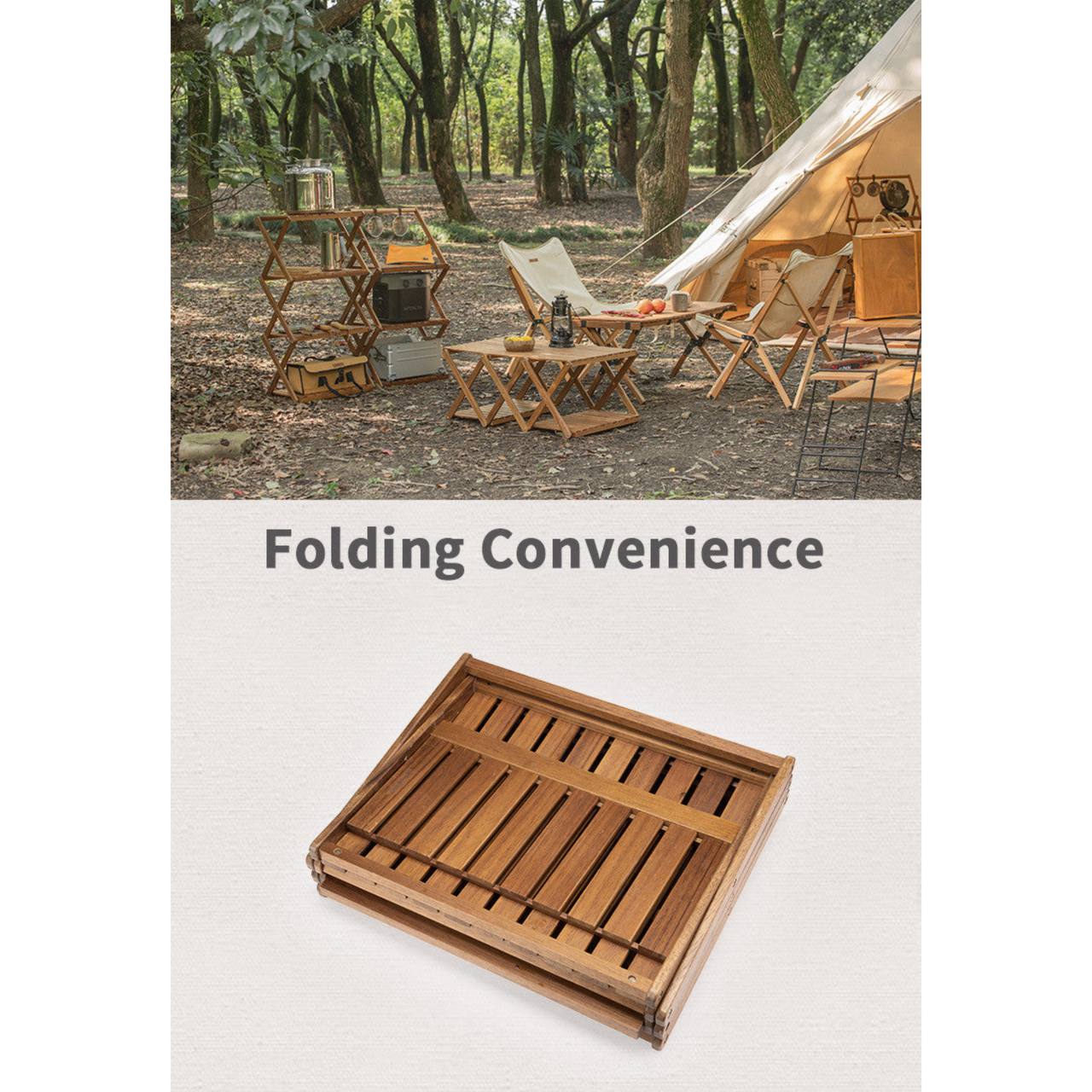 - ظرفیت بالا در کنار وزن مناسب: با وزن تقریبی 5.3 کیلوگرم، این قفسه سبکتر از آن چیزی است که از یک سازه چوبی انتظار دارید، اما در عین حال قادر است تا 30 کیلوگرم بار را بهراحتی تحمل کند. این ویژگی آن را برای نگهداری لوازم آشپزی، ظروف، خوراکیها و سایر اقلام کمپینگ یا حتی استفاده خانگی کاملاً مناسب میسازد.