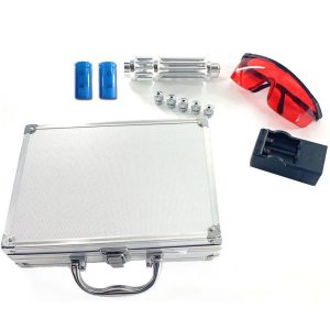 لیزر حرارتی با نور ابی با بسته بندی شیک و جذابی به بازار عرضه می شود.این بسته بندی به صورت یک کیف دست دار است که داخل ان علاوه بر خود دستگاه دو عدد باتری لیتیومی قابل شارژ به همراه شارژرش(شارژر ان برقی اتوماتیک است)،5 عدد لنز جهت رقص نور(بر روی دهانه خروجی لیزر قابل اتصال است)و همچنین یک عینک با شیشه های قرمز جهت محافظت از چشم قرار می گیرد.