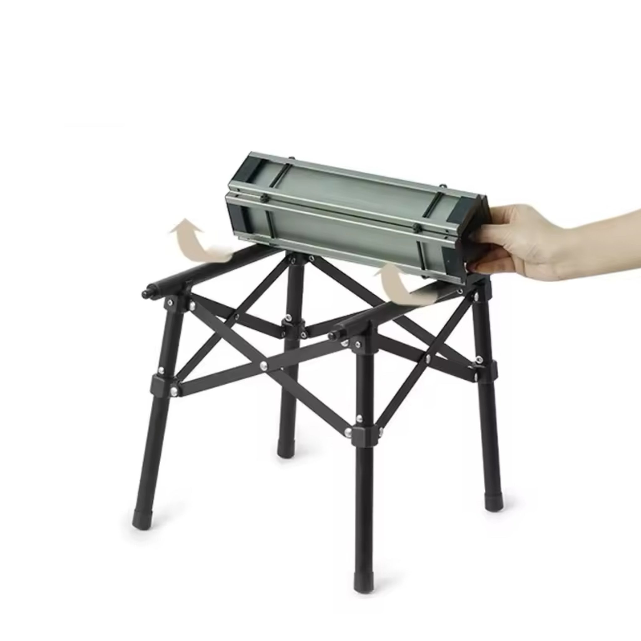 این میز جمعوجور با طراحی هوشمندانهاش، به شما فضایی مطمئن و راحت برای استراحت و لذتبردن از سفر میبخشد. چه در یک کمپ دوستانه، چه در دل جنگل و کوه، یا حتی در یک پیکنیک خانوادگی ساده، کافی است آن را باز کنید تا تجربهای متفاوت و دلنشین خلق شود.