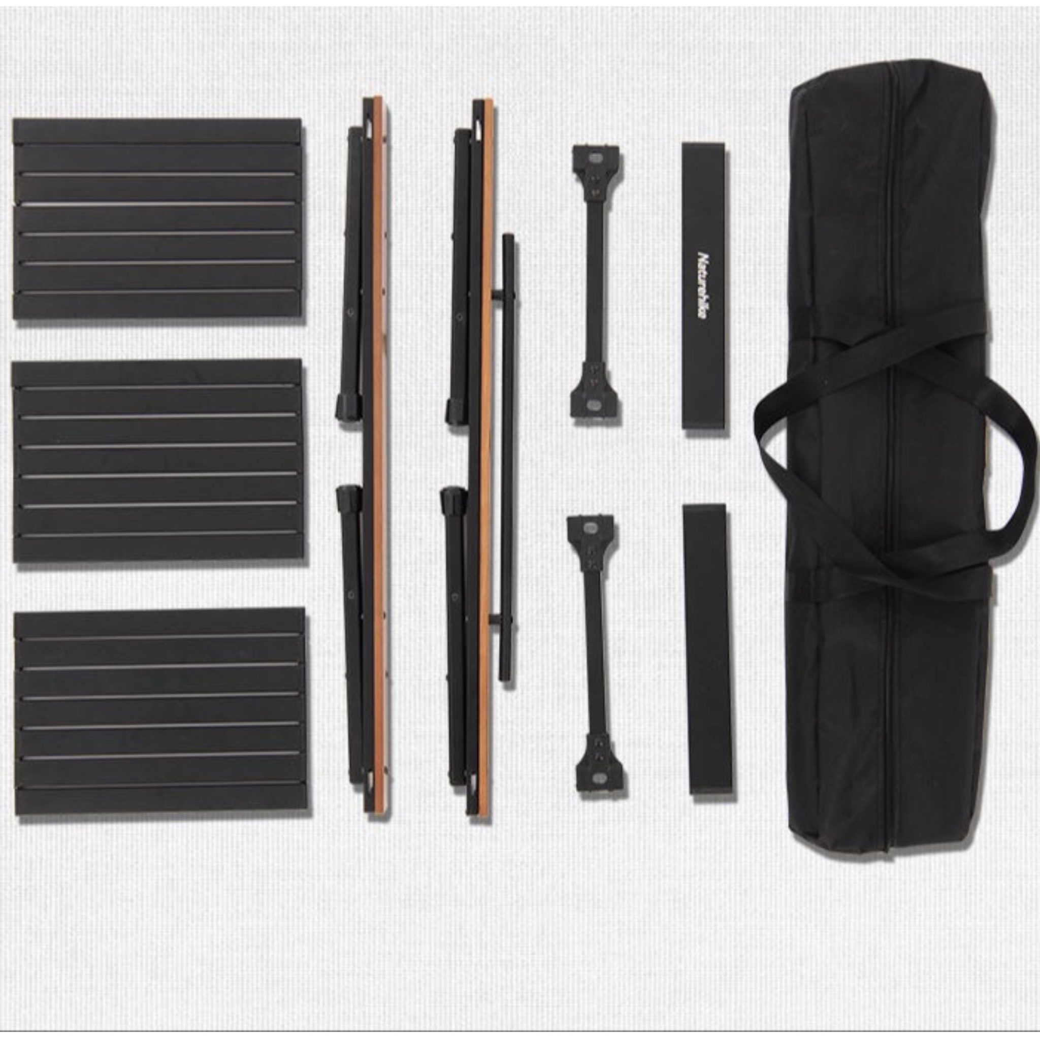 میز تاشو نیچرهایک مدل NH19Z003-D مدل: NH19Z003-D جنس بدنه: آلیاژ آلومینیوم تقویت‌شده جنس اتصالات: پلاستیک فشرده ABS + آلومینیوم مستحکم نوع رویه‌ی میز: صفحه‌ی آلومینیومی مات با شیارهای ضد لغزش ابعاد در حالت باز (S): 90 × 52 × 46 سانتی‌متر ابعاد باز (L): 121.5 × 68 × 43 سانتی‌متر ارتفاع: قابل تنظیم از 45 تا 70 سانتی‌متر ابعاد در حالت جمع (S): 96.5 × 11 سانتی‌متر ابعاد در حالت جمع (L): 72 × 24 ×14.5 سانتی‌متر وزن خالص (S): حدود 4 کیلوگرم وزن (L): حدود 6.5 کیلوگرم حداکثر ظرفیت تحمل وزن: 30 تا 40 کیلوگرم قابلیت تنظیم ارتفاع: دارد – در 3 یا 4 سطح قابل تنظیم با قفل‌های تلسکوپی مقاوم