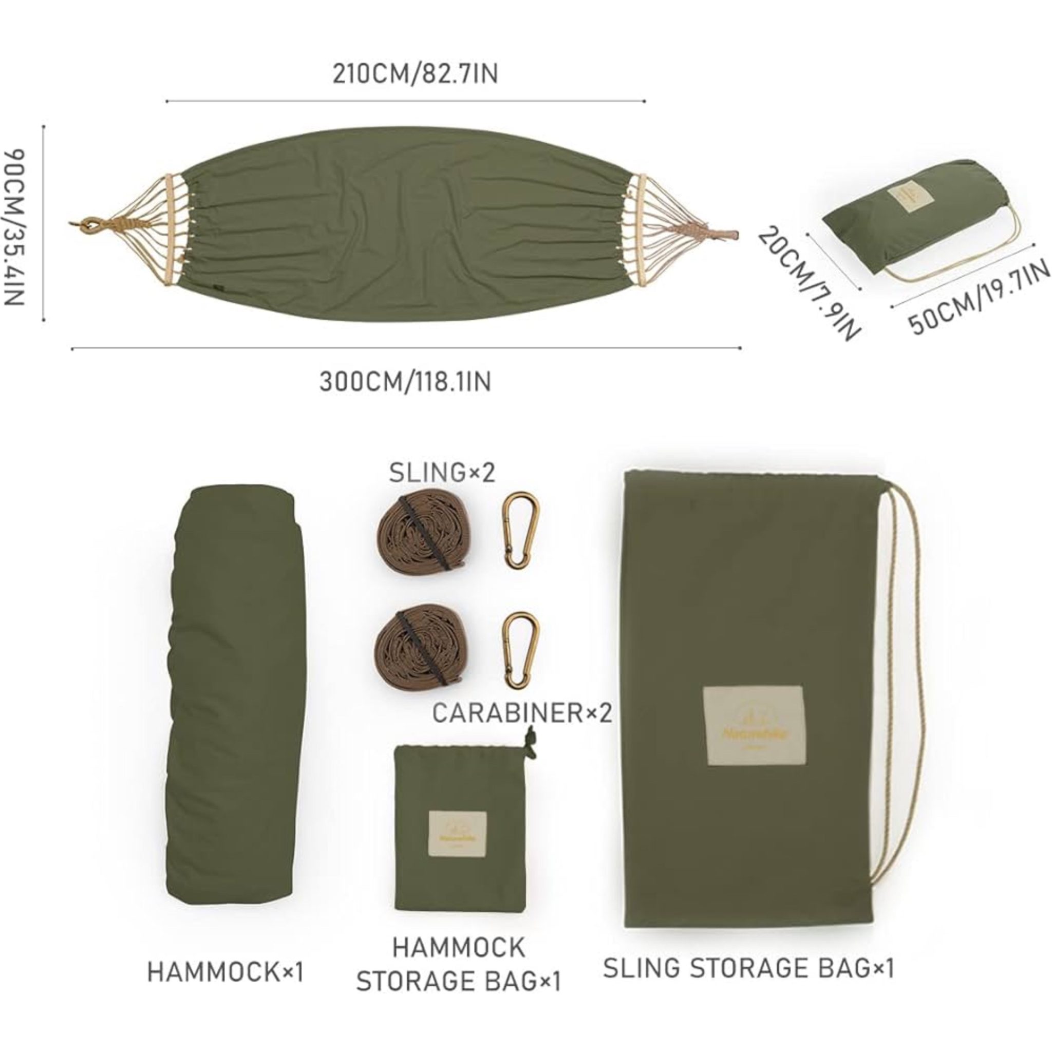 این ننو در مدل تک نفره با ابعاد 300 در 90 سانتیمتر و ظرفیت تحمل وزن تا 200 کیلوگرم عرضه میشود. وزن بسیار سبک (۱.۵ کیلوگرم) و وجود کیف حمل مخصوص باعث میشود این ننو بهراحتی در کولهپشتی یا صندوق ماشین جا بگیرد و همیشه قابل حمل باشد.