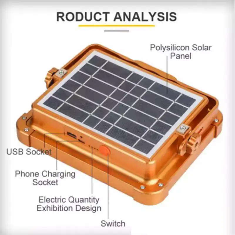 پروژکتور شارژی خورشیدی مدل Projector BL-911 جنس بدنه : پلاستیک مقاوم نوع لامپ:SMD حالت نوردهی:5 حالت دارای نشانگر ظرفیت باتری چراغ چشمک زن دارای یک عدد USB خروجی پاوربانک دارای پاور بانک کاملا ضد اب دارای 1 عدد پورت USB خروجی امکان شارژ از طریق نور خورشید و کابل USB Type-C مدت زمان شارژ دهی بین 6 تا 8 ساعت دارای محافظ ایربک و فاقد اهنربا