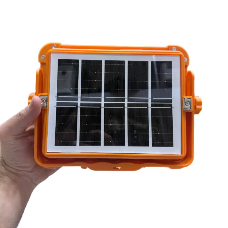 پروژکتور شارژی خورشیدی تاسک مدل Tusk-V5000 برند و مدل: Tusk-V5000 ظرفیت باتری: 16500 تا 17500 میلی‌آمپر ساعت (5 ولت) شدت روشنایی (لومن): 5000 لومن مدت زمان نوردهی: 5 تا 9 ساعت بسته به حالت نوردهی روش‌های شارژ: پنل خورشیدی و کابل Type-C نوع لامپ: LED SMD با 800 عدد چیپ نوری تعداد حالات نوردهی: 5 حالت