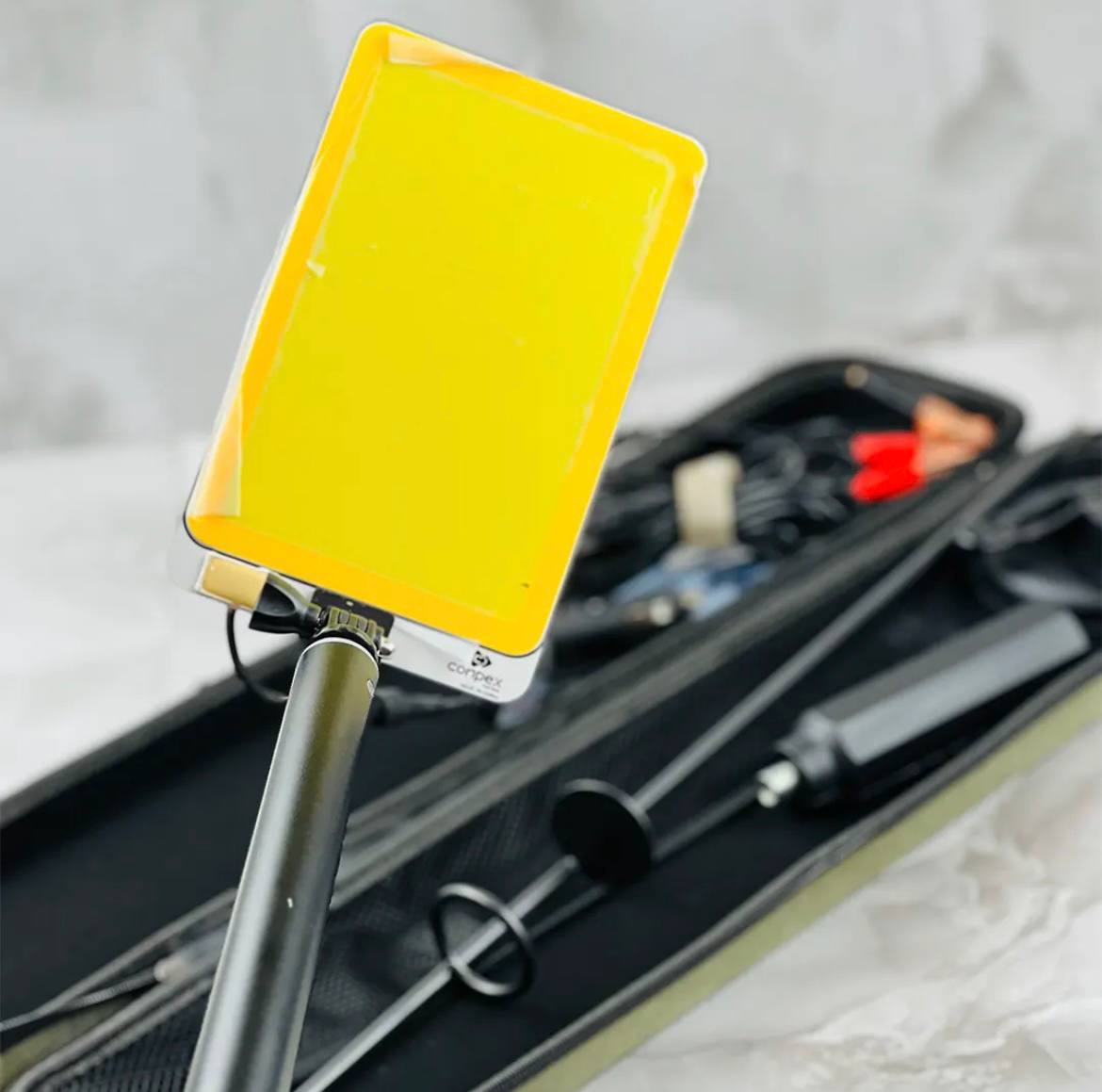 پروژکتور ماشینی کانپکس (Conpex) مدل FR-27 COB RF جنس: آلومینیوم ارتفاع: 3.5 متر تعداد ال ای دی: 342 عدد ابعاد لامپ: 23×13 سانتی‌متر نوع لامپ:COB دارای کیف مخصوص حمل دارای گیره جهت اتصال به دو سر باتری خودرو دارای رنگ نور سفید میزان روشنایی 69000 لومن دمای روشنایی:6000 کلوین توان مصرفی:1000 وات عمر لامپ:بیش از 30000 ساعت