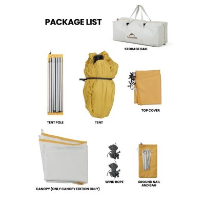 - کیف حمل: شامل همه اجزا، میخها، طنابهای بادگیر و پایهها برای حمل آسان
