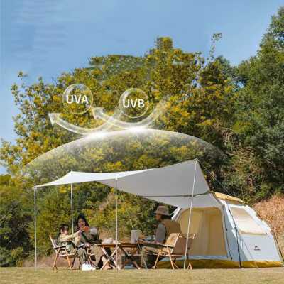 نسخه دارای سایهبان این چادر، علاوه بر محافظت در برابر آفتاب و باران، فضای وسیعی برای نشستن و استراحت در بیرون چادر فراهم میکند و تجربهای راحت و لذتبخش از کمپینگ خانوادگی ایجاد میکند.