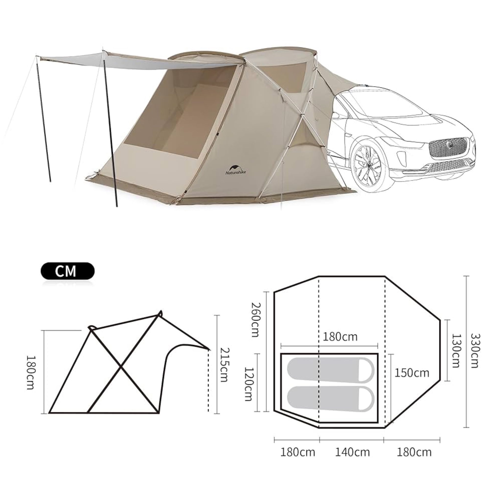 چادر جانبی ماشین Cloud Wild نیچرهایک مدل CNH22ZP014 با ترکیبی از مواد باکیفیت و طراحی هوشمندانه، تجربهای متفاوت از اقامت در طبیعت ارائه میدهد. پوشش بیرونی چادر از پارچه Oxford 150D با پوشش نقرهای ضد UV طراحی شدهاست که نهتنها مقاومت بالایی در برابر باران و باد دارد، بلکه مانع نفوذ اشعههای مضر خورشید میشود و دمای داخلی چادر را متعادل نگه میدارد.