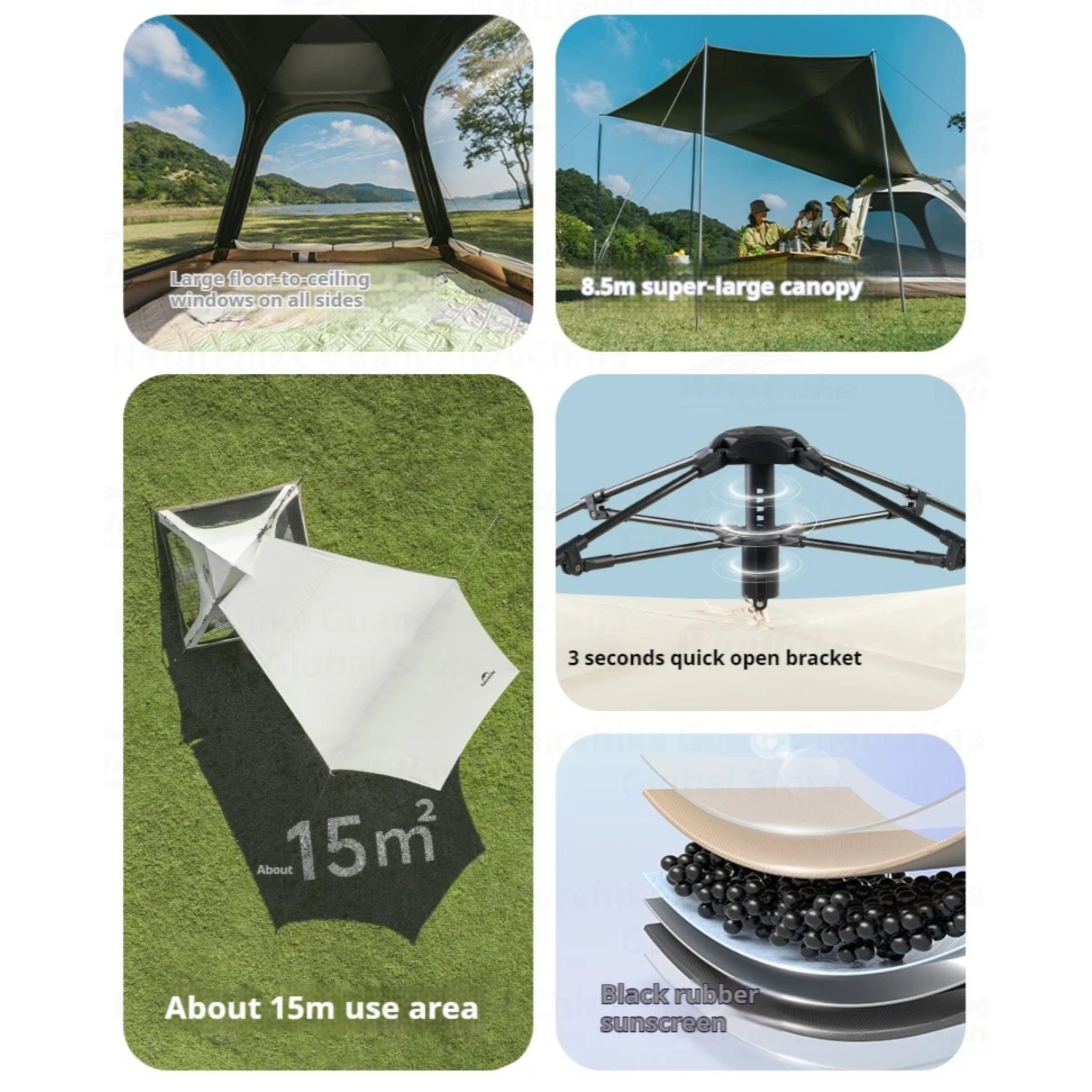 چادر شش ضلعی نیچرهایک مدل NH21ZP001 مدل: NH21ZP001 ظرفیت نفرات: مناسب برای 3 تا 4 نفر نوع تهویه: یک درب اصلی + 3 پنجره توری‌دار + دریچه سقفی جنس بدنه: پلی‌استر مقاوم 210T با پوشش ضدآب ابعاد باز: 250 × 288 × 145 سانتی‌متر ابعاد جمع‌: 70 × 25 × 25 سانتی‌متر وزن خالص: حدود 5.5 کیلوگرم مساحت پوشش‌دهی: حدود 5.5 متر مربع جنس اسکلت: فایبرگلاس