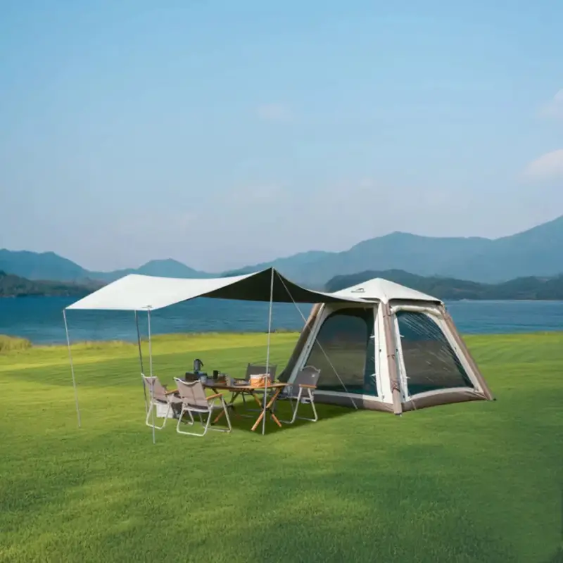 یکی از ویژگیهای منحصر به فرد این مدل، پمپ برقی داخلی است که بهسادگی با فشار یک دکمه فعال میشود و ساختار بادی چادر را به سرعت باد میکند. این باعث میشود برای نصب نیاز به پمپ دستی یا پیچیدن میلهها نداشتهباشید.