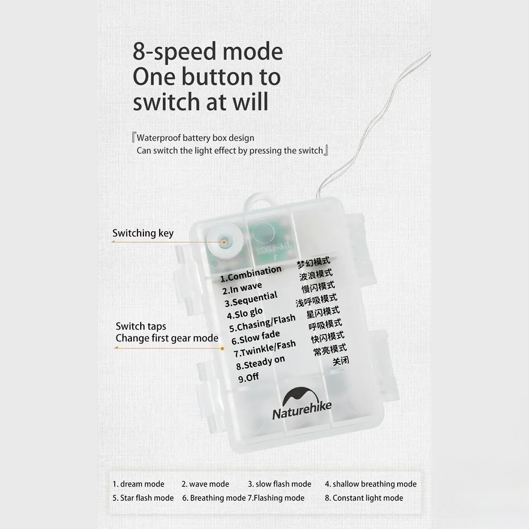 چراغ ریسه‌ای Naturehike مدلی است که هم برای کاربردهای عملی و هم برای تزئینات زیباشناسانه طراحی شده و با ترکیب سادگی، دوام و مصرف کم انرژی، انتخابی هوشمندانه برای هر کسی است که به روشنایی و زیبایی محیط اهمیت می‌دهد.