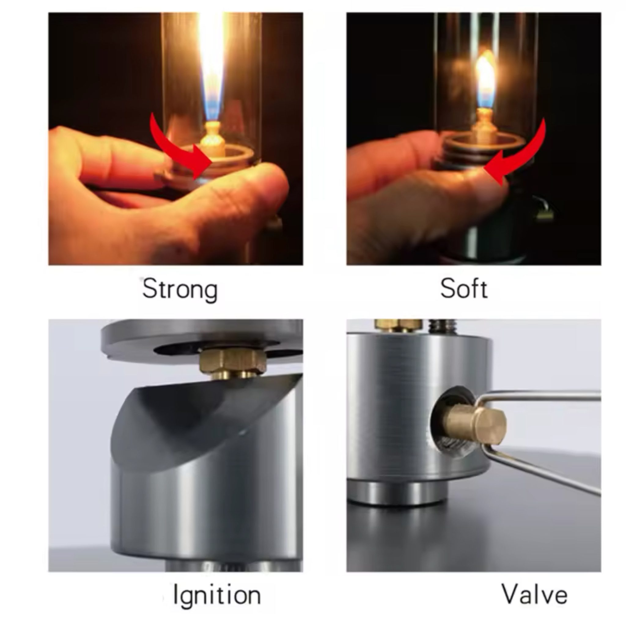 - تنظیم شعله: قابل تنظیم با چرخاندن شیشه محافظ