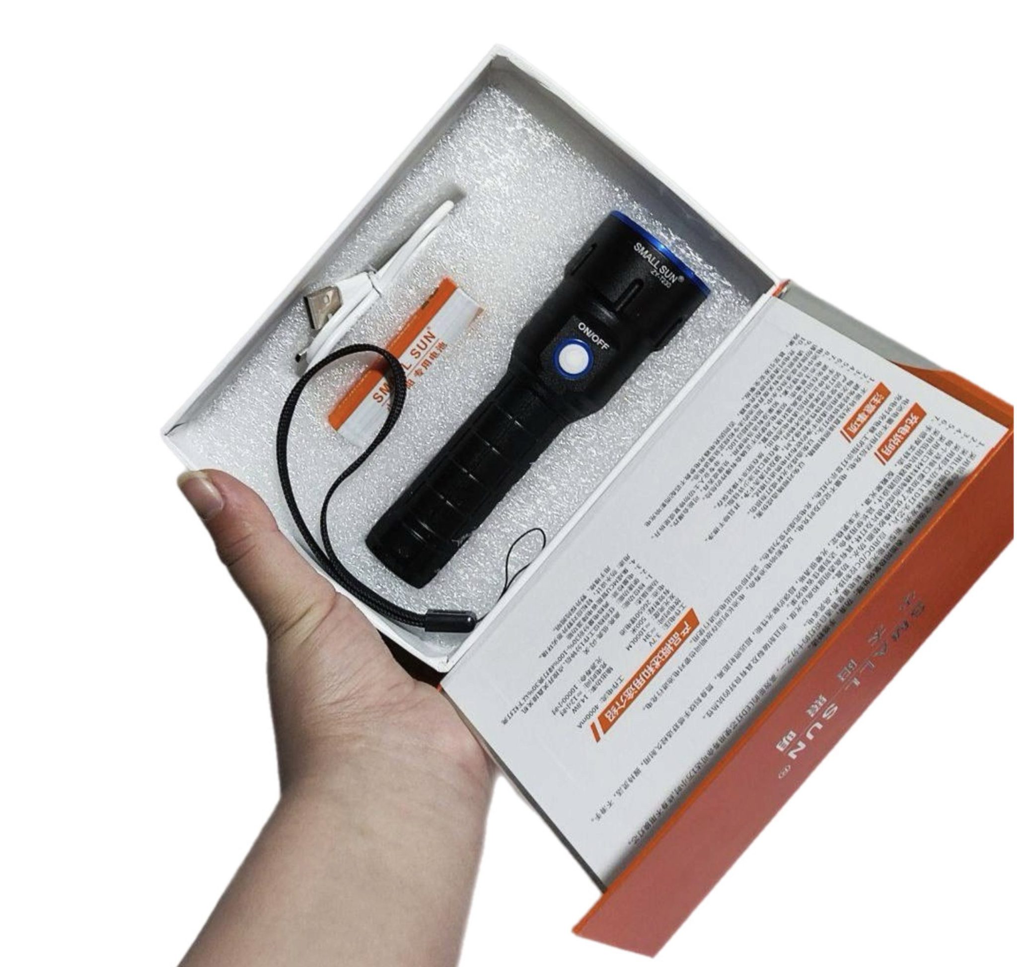 چراغ قوه اسمال سان مدل T700 plus مدل: XP60 نوع لامپ: LED (چیپ XP60 با بازده بالا) حالت‌های نوردهی: نور قوی، نور متوسط، نور کم، حالت چشمک‌زن (SOS) برد نوردهی: حداکثر 800 متر میزان روشنایی: 1200 لومن قابلیت زوم (تنظیم کانون): دارد (زوم کشویی یا چرخشی) جنس بدنه: آلومینیوم هواپیمايی مقاوم و سبک وزن: 300 گرم ظرفیت باتری: 4800 میلی‌آمپر ساعت تعداد باتری: 1 عدد
