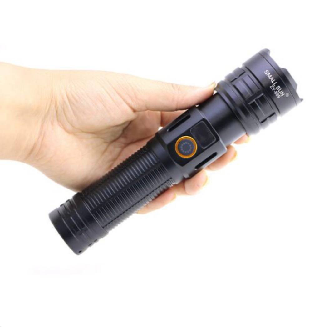 چراغ قوه اسمال سان مدل ZY-T181 مدل: ZY-T181 میزان روشنایی: 2000 لومن واقعی برد نور: تا 800 متر نوع نور: مهتابی (Cool White) تعداد لامپ: 1 عدد LED قدرتمند حالات نوردهی: نور قوی، نور متوسط یا ملایم، حالت چشمک‌زن اضطراری نوع باتری: لیتیوم-یونی قابل شارژ ظرفیت باتری: 12800 میلی‌آمپر ساعت جنس بدنه: آلومینیوم مقاوم