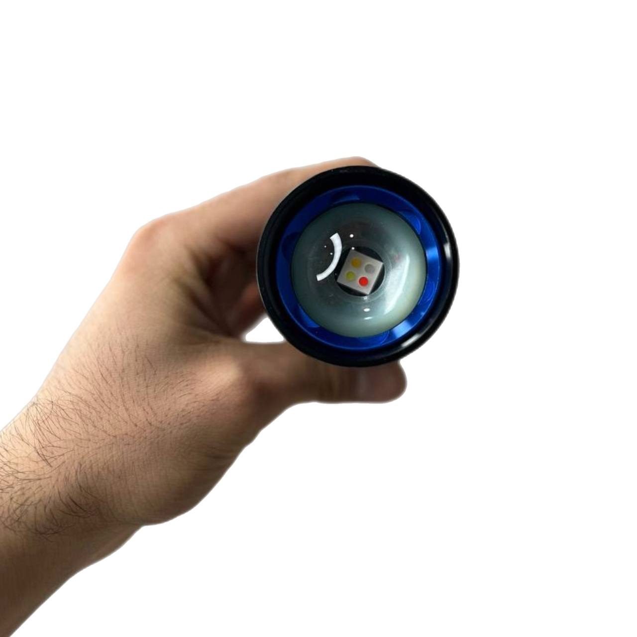 - نور فوقالعاده قوی و برد بالا: این چراغ قوه مجهز به چهار عدد LED پرقدرت با رنگ نورهای سفید، ابی، قرمز و زرد است که نوری خیرهکننده با برد بالای 400 متر تولید میکنند. شدت نور که معادل 3000 لومن می باشد، به حدی است که در تاریکی مطلق، دید کاملی از محیط اطراف را فراهم میکند.