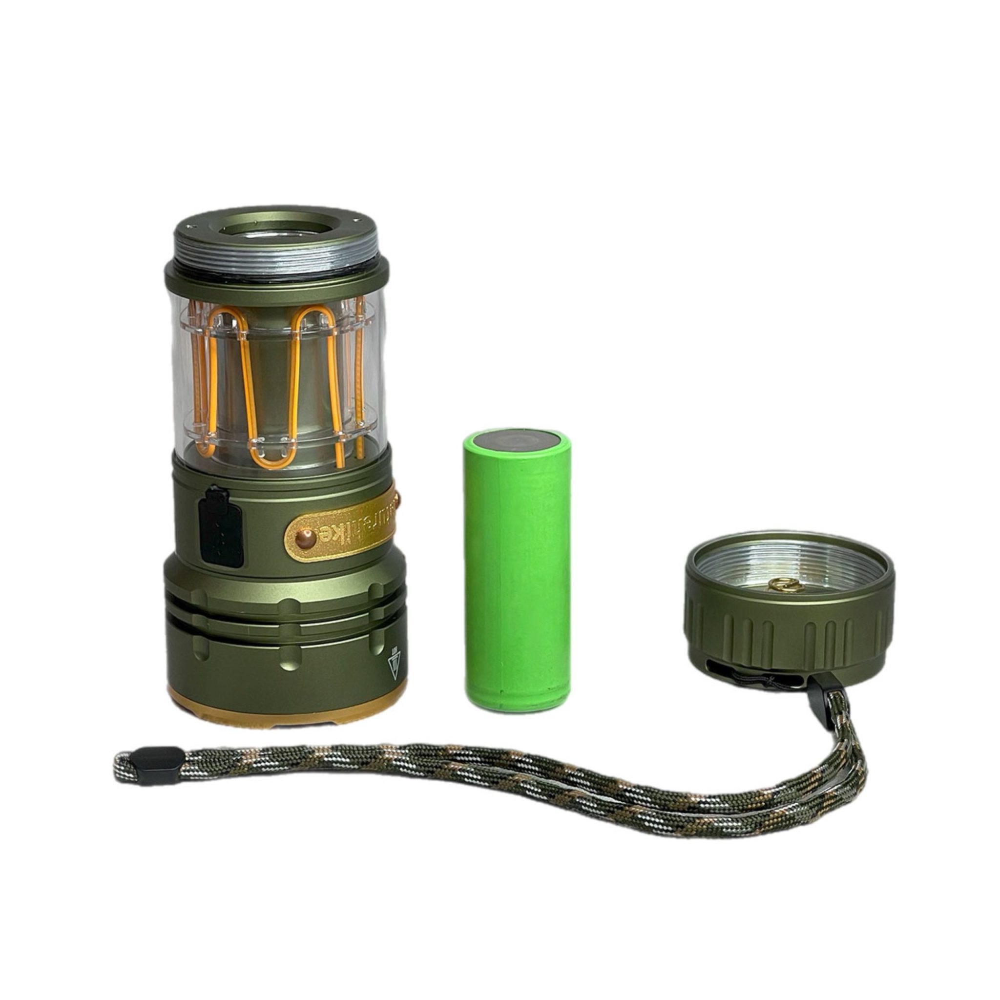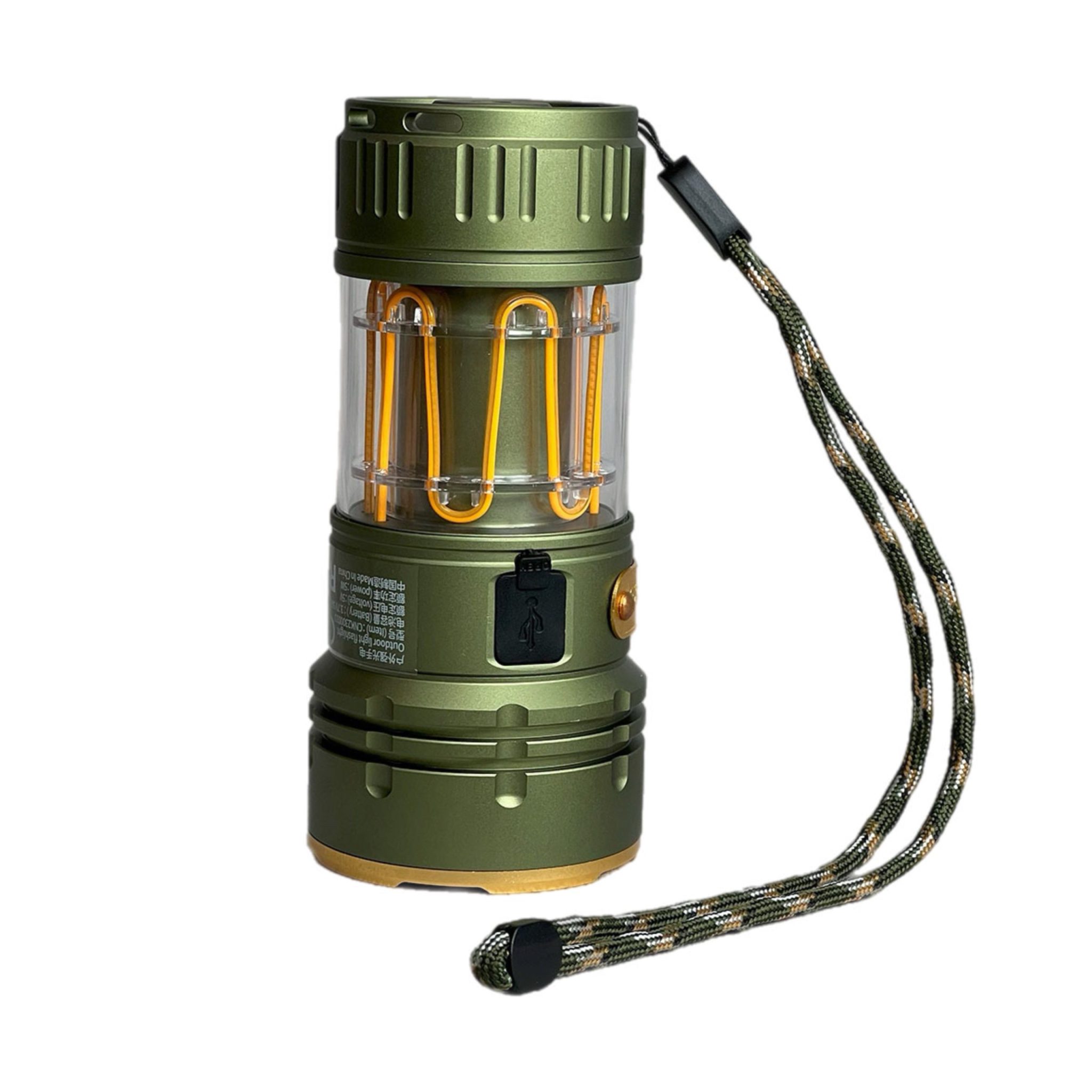 چراغ فانوس شارژی YESNICE مدل 666 مدل: 666 رنگ: سفید جنس بدنه: پلاستیک مقاوم (ABS) قدرت روشنایی: 1000 لومن ابعاد محصول: 19 × 5 × 5 سانتی‌متر وزن: بسیار سبک و قابل حمل طراحی: مجهز به قلاب تاشو برای آویزان کردن در چادر یا تجهیزات کمپ پایه مغناطیسی: دارد نوع باتری: لیتیوم-یون 18650 قابل شارژ تعداد لامپ: یک لامپ اصلی و دو لامپ جانبی حالت‌های نوردهی: 5 حالت مختلف قابلیت تنظیم کانون نور: دارد
