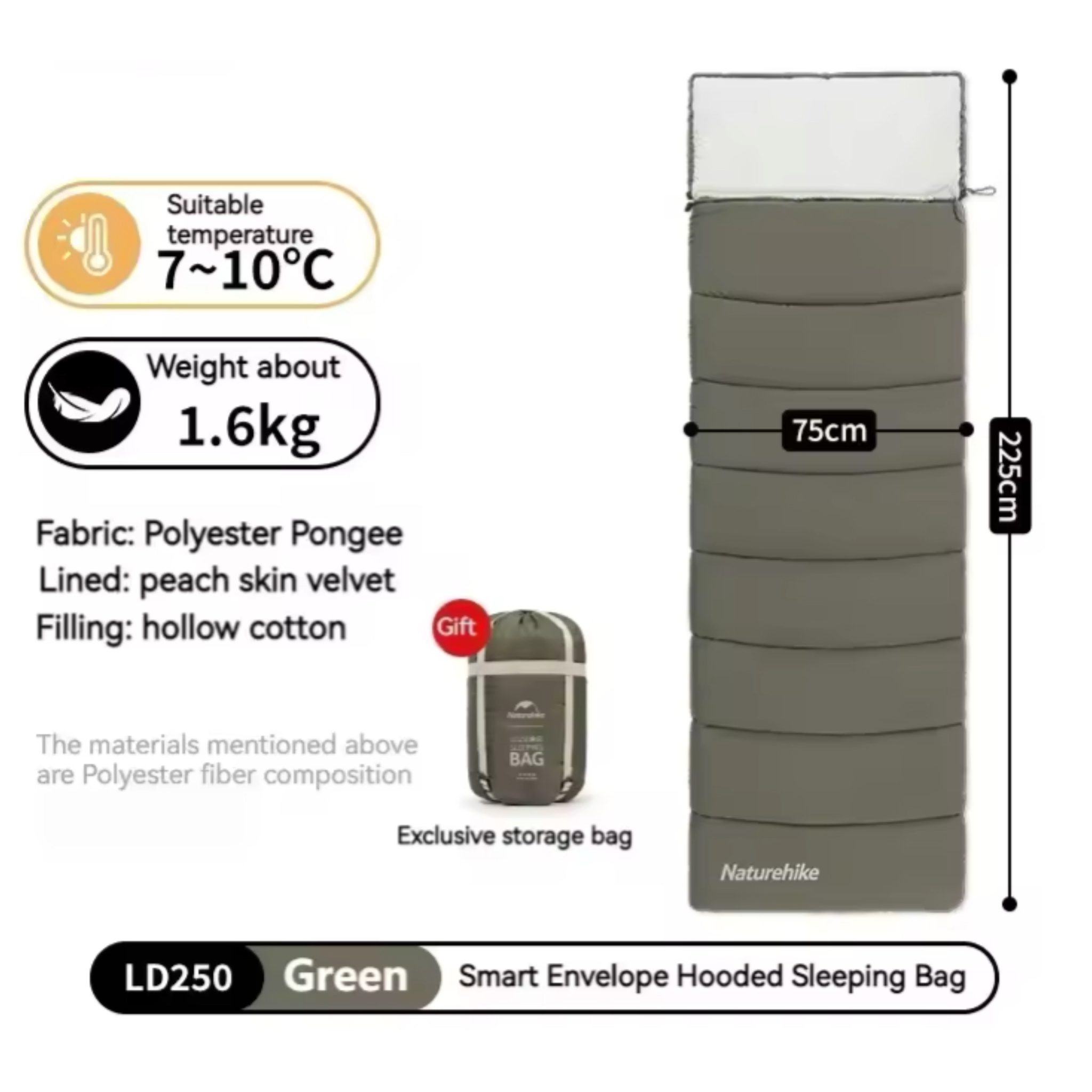 کیسه خواب تک نفره LD250 نیچرهایک مدل CNK2300SD016 انتخابی ایدهآل برای افرادی است که به کیفیت، راحتی و اطمینان در سفر اهمیت میدهند. این محصول با طراحی استاندارد و تولید دقیق، همراهی مطمئن در کمپینگ، طبیعتگردی، سفرهای چندروزه و حتی استفاده روزمره به شمار میآید. برند Naturehike همواره با ارائه تجهیزات حرفهای و کاربردی، جایگاه ویژهای در میان علاقهمندان به ماجراجویی و سفر پیدا کرده است و این کیسهخواب نیز نمونهای از تعهد این برند به کیفیت و راحتی است. مشخصات فنی این محصول شامل: