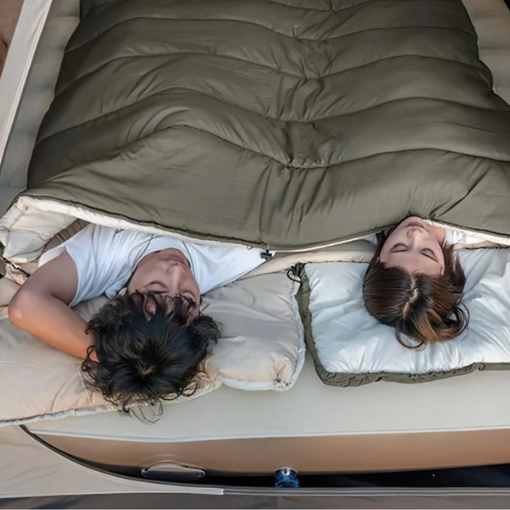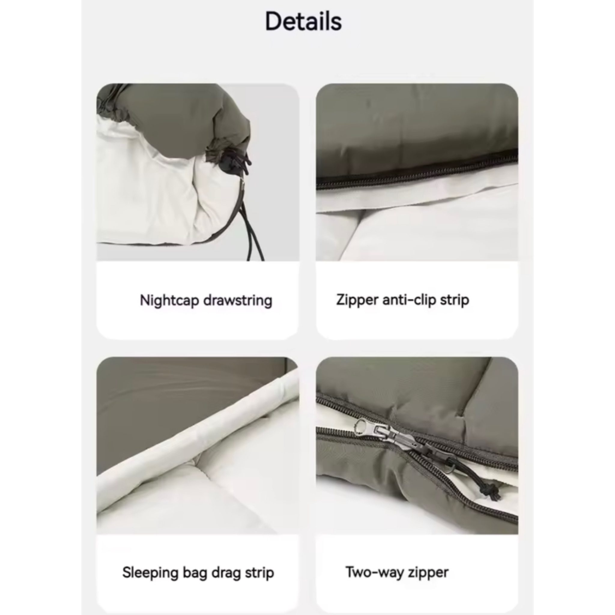 زیپ دوطرفه با کیفیت بالا امکان باز شدن کامل کیسهخواب و استفاده بهعنوان پتو را فراهم میکند. همچنین قابلیت Splicing اجازه میدهد دو کیسهخواب مشابه به هم متصل شده و فضای بزرگتری برای خواب زوجها یا خانوادهها ایجاد شود.