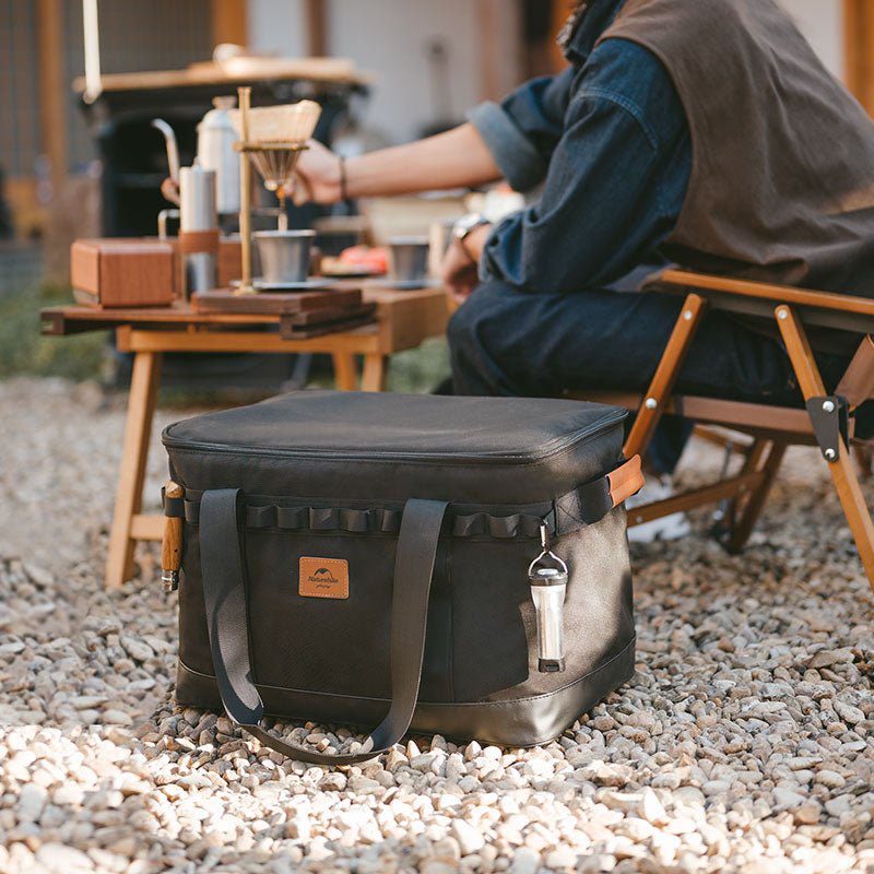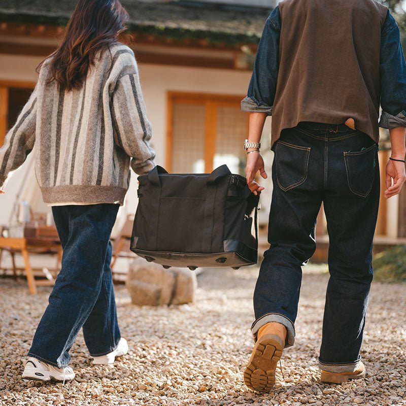 نکته مهم دیگر در طراحی داخلی این کیف، قابلیت ایستادن کامل بدنه حتی در حالت خالی است. ساختار داخلی کیف بهگونهای طراحی شده که بدنه شل و افتاده نمیشود، بلکه شکل مکعبی خود را حفظ میکند. این ویژگی، مخصوصاً در کمپینگ یا داخل خودرو، باعث دسترسی راحتتر به محتویات میشود.