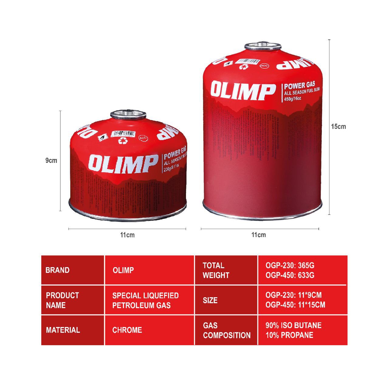 ترکیب گاز:90% iso butane 10% propane