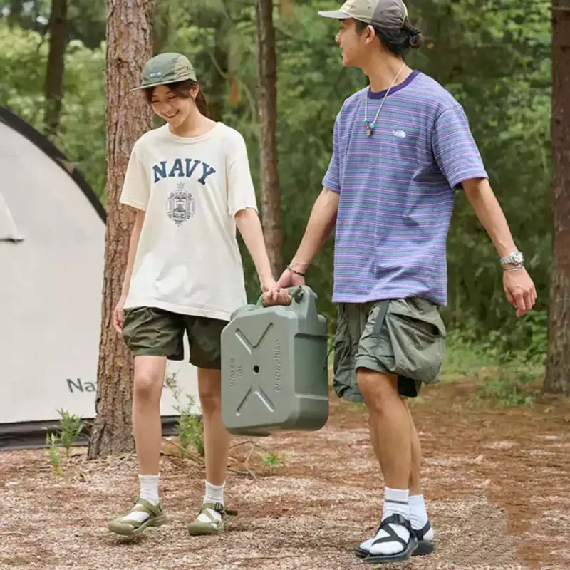 - دسته بزرگ و راحت برای حمل آسان: گالن دارای دستهای بزرگ و ارگونومیک است که حتی هنگام پر بودن کامل، امکان حمل با یک دست و بدون فشار اضافی را فراهم میکند. این طراحی بهویژه در سفرهای کمپینگ، طبیعتگردی و حمل طولانی مدت بسیار کاربردی است.