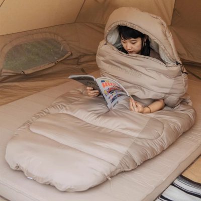فرم مومیایی و طراحی ارگونومیک این کیسه خواب باعث میشود بدن در وضعیت طبیعی و راحت قرار گیرد و فضای خالی به حداقل برسد تا گرما بهتر حفظ شود. یکی از ویژگیهای منحصربهفرد این مدل، وجود زیپهای مخصوص در ناحیه دست است که امکان بیرون آوردن دستها را بدون از دست دادن کامل گرما فراهم میکند؛ این قابلیت برای کارهایی مثل نوشیدن، مطالعه، استفاده از موبایل یا دسترسی به وسایل، بدون نیاز به خروج از کیسه خواب، بسیار کاربردی است. این طراحی باعث میشود حس محدودیت کاهش یابد و کاربر حتی در استفاده طولانیمدت نیز احساس راحتی کامل داشته باشد.