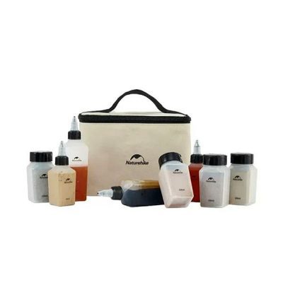 جا ادویه 8 تکه نیچرهایک (Naturehike) جنس کیف:پلاستیک BPA Free کیف برزنتی ضدآب ویژگی ظروف ان:ظروف ادویه دارای دو سوراخ پاشش مختلف تعداد:8 عدد 4 ظرف:مخصوص حمل مایعات 4 ظرف:مخصوص ادویه رنگ:کرم رنگ دارای درب پیچی دارای یک دسته بر روی کیف کاملا بدون نشت مواد داخل ظروف
