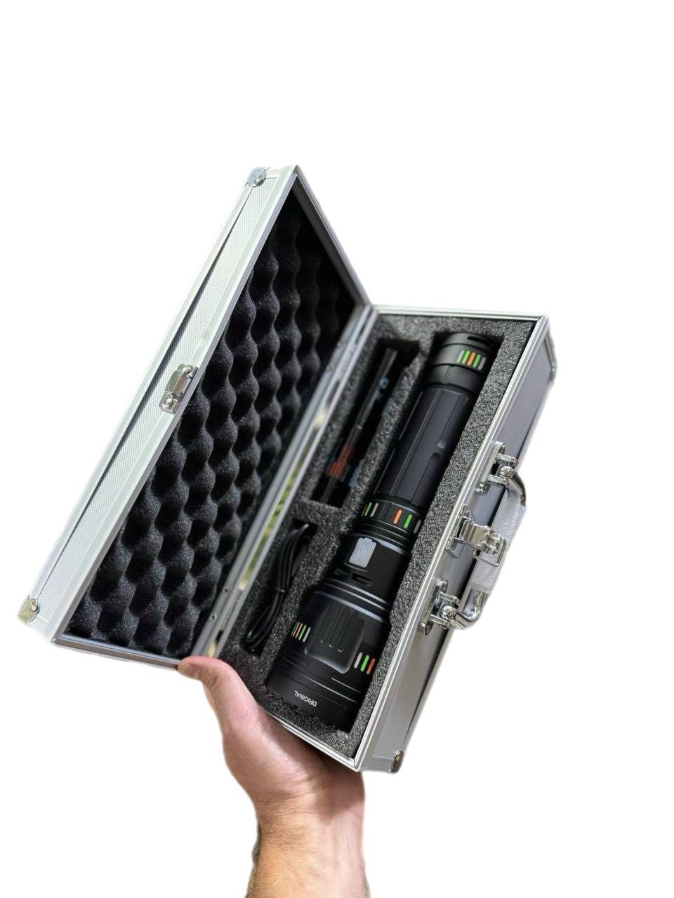 از مهم ترین ویژگی های یک چراغ قوه برد نور و قدرت روشنایی ان است.برد نور و قدرت چراغ قوه یکی دیگر از فاکتورهایی است که استفاده کننده حتما ان را در نظر میگیرد.برد نور این چراغ قوه 1000 متر بوده و قدرت روشنایی ان 5000 لومن است که این اعداد نشان دهنده ی قدرت فوق العاده لامپ دستگاه و خود دستگاه است.